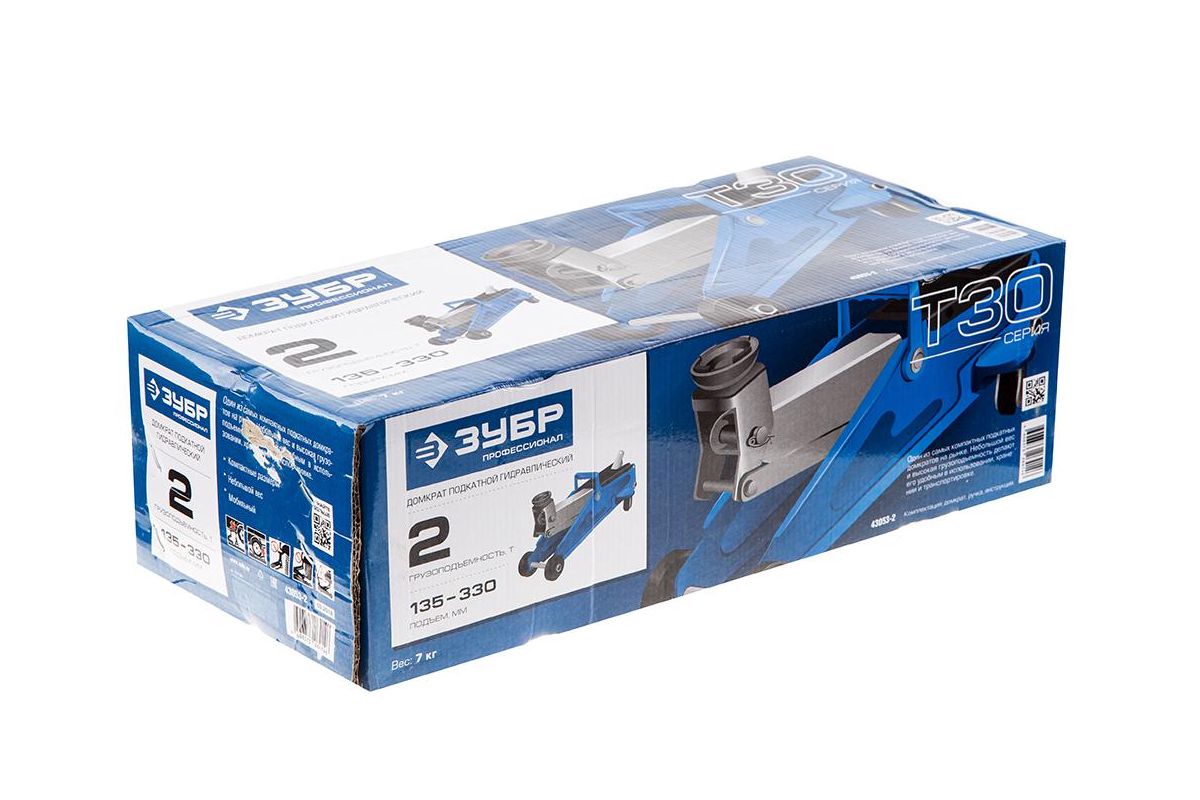 Домкрат ЗУБР 43053-2 гидравлический подкатной t30 2т 135-330мм профессионал