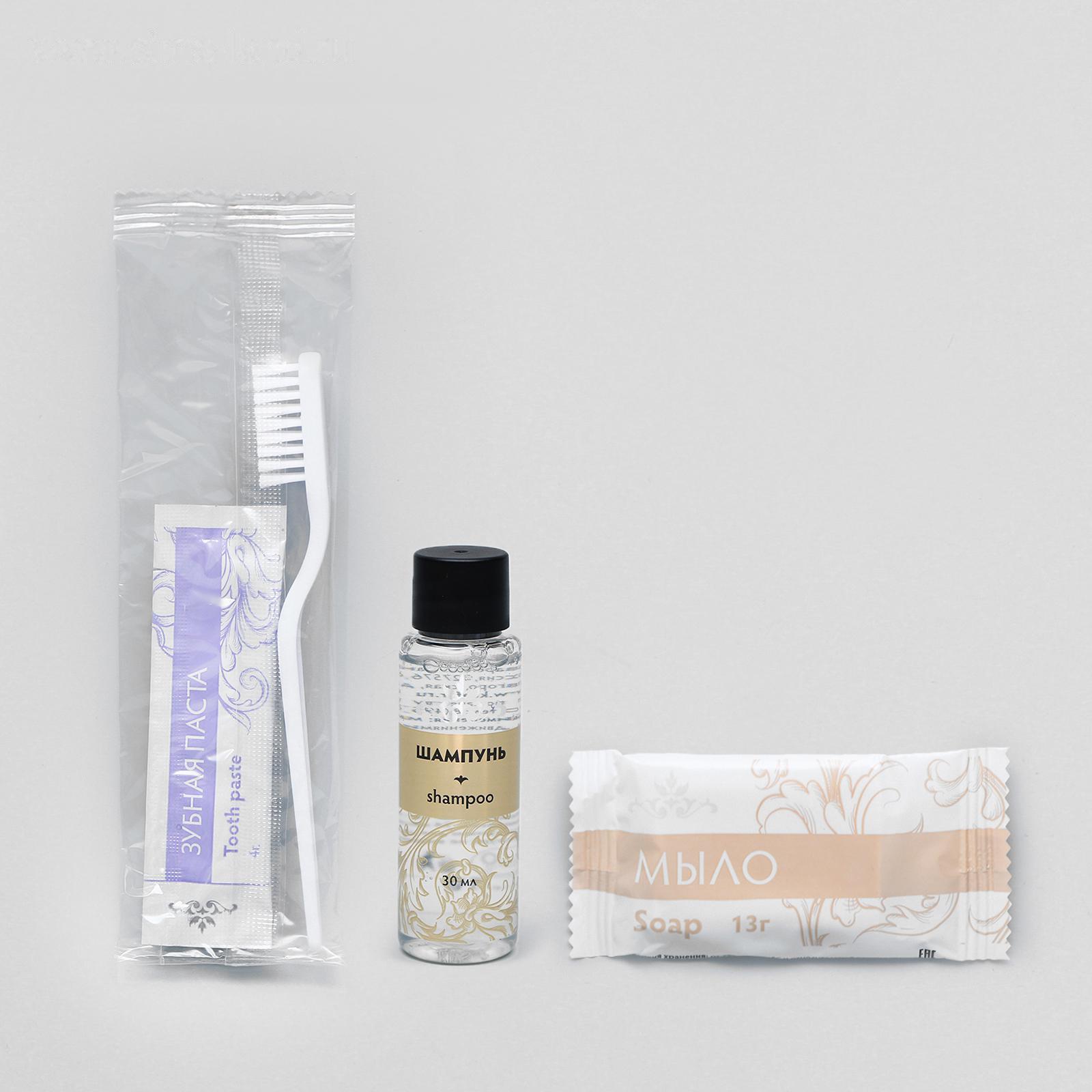 Travel Набор из 3 предметов, Зубной набор, Шампунь в флаконе, Мыло