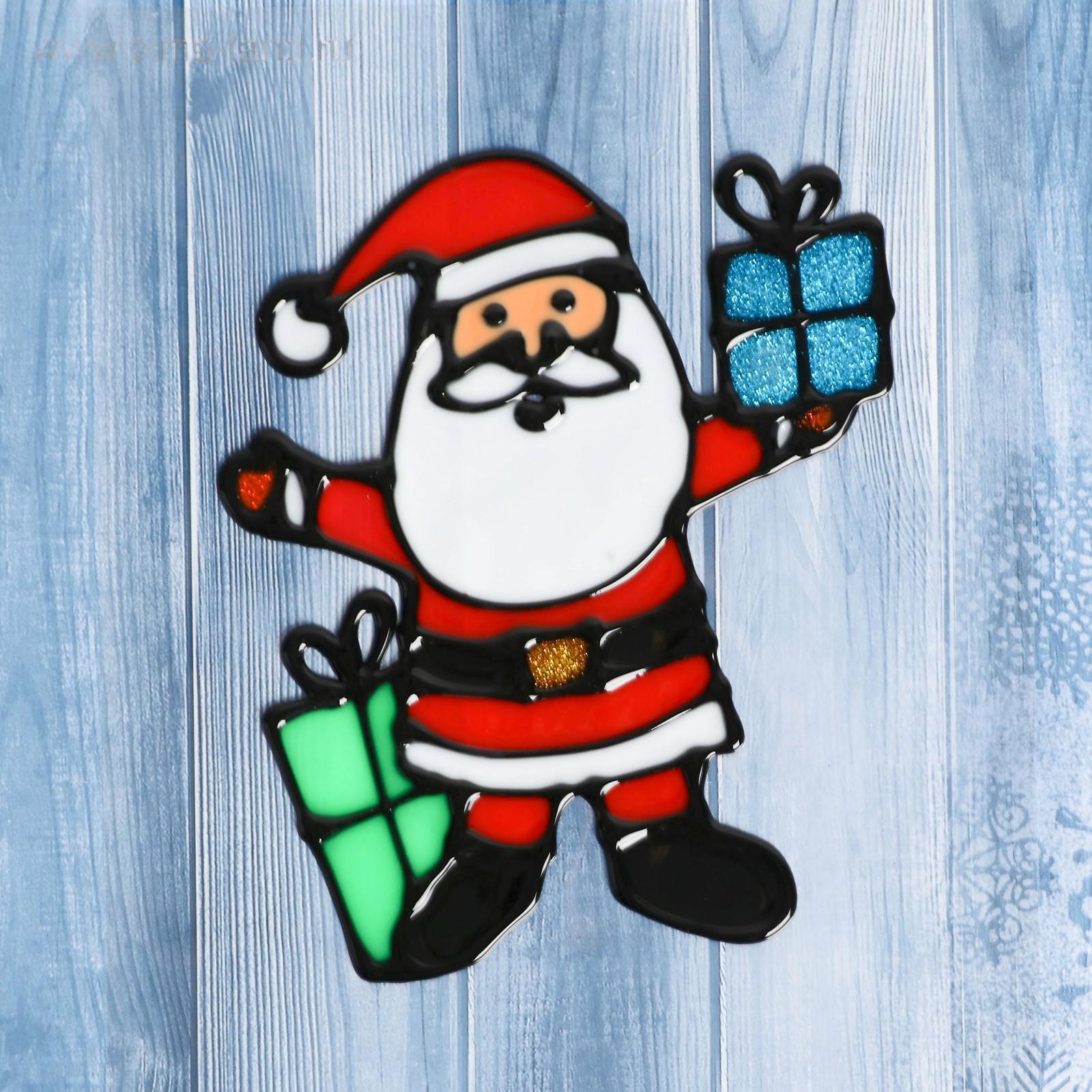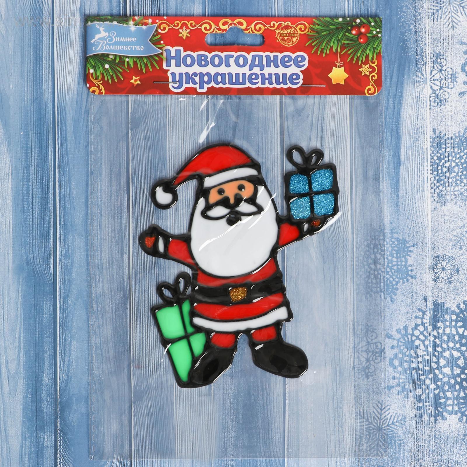 Наклейка на стекло "Дед Мороз и два подарка" 12х14,5 см