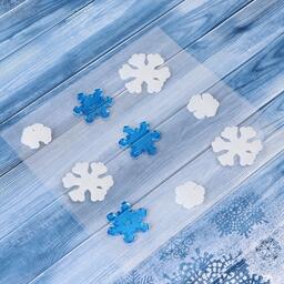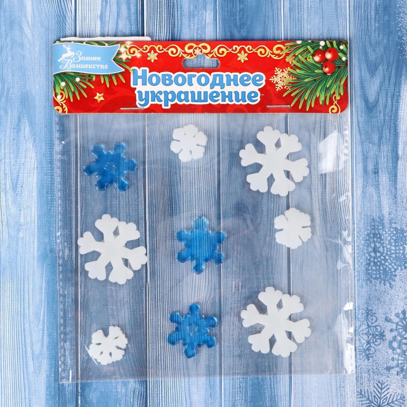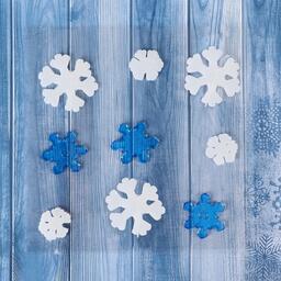 Наклейка на стекло "Снежинки белые и синие" (набор 9 шт) 12,5х12,5 см, сине-белый