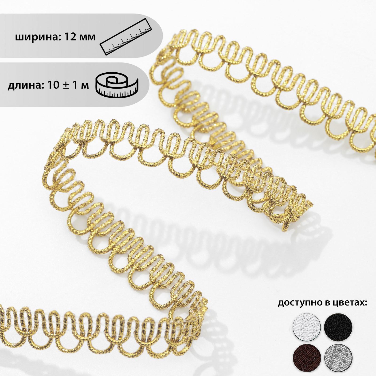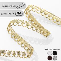 Тесьма декоративная «Петля», 12 мм, 10 ± 1 м, цвет золотой