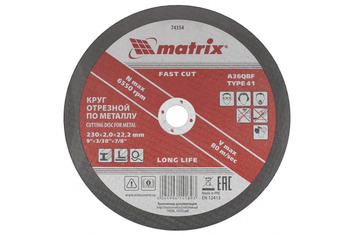 Круг отрезной MATRIX 74354 по металлу 230x2.0x22.2мм