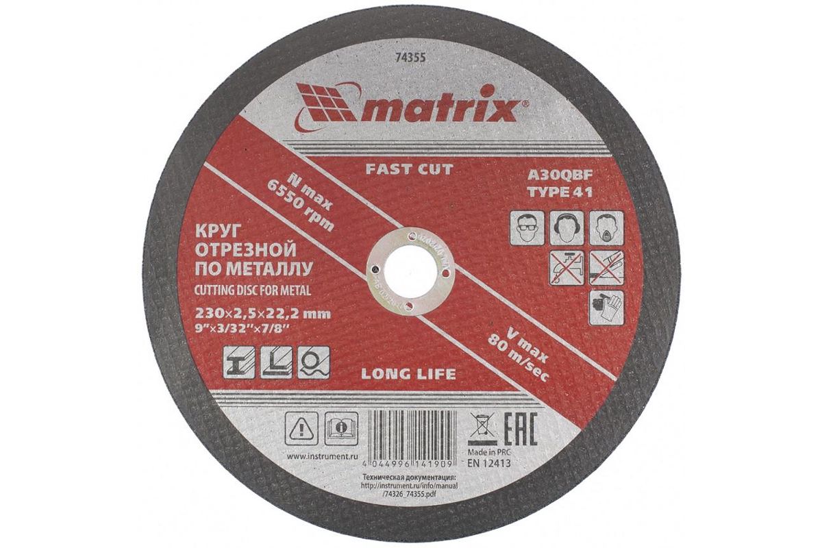 Круг отрезной MATRIX 74355 по металлу 230x2.5x22.2мм