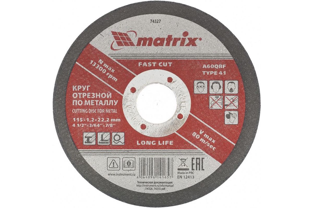 Круг отрезной MATRIX 115 х 1.2 х 22 мм 1шт (74327)
