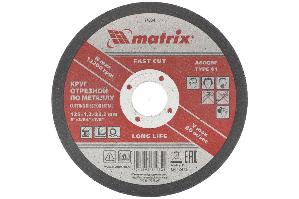 Круг отрезной MATRIX 74334 по металлу 125x1.2x22.2мм