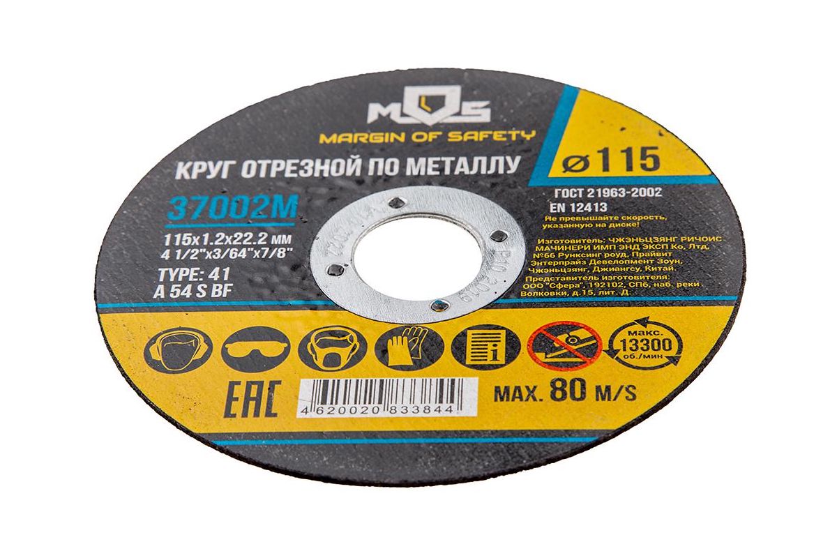 Круг отрезной по металлу MOS, посадочный диаметр 22,2 мм, 115х1,2 мм
