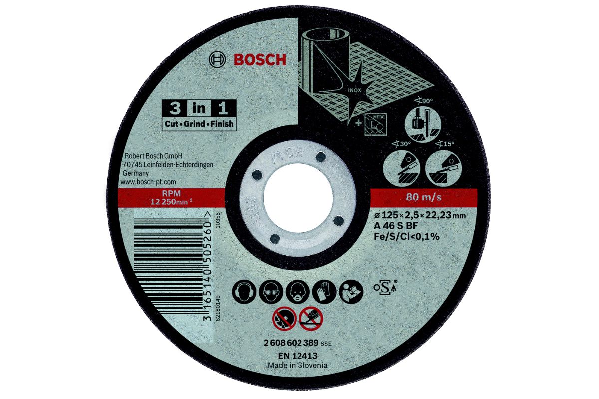Круг отрезной BOSCH BOSCH 3 in 1, 125x2,5x22, (2.608.602.389) по нержавеющей стали