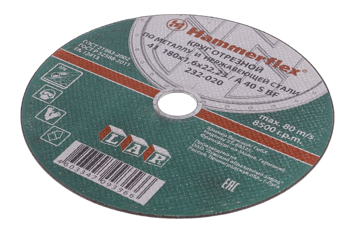 180 x 1.6 x 22 A 40 S BF Круг отр.Hammer Flex 232-020 по металлу и нержавеющей стали цена за 1 шт