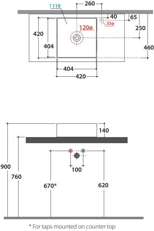 - Тип монтажа накладной на столешницу