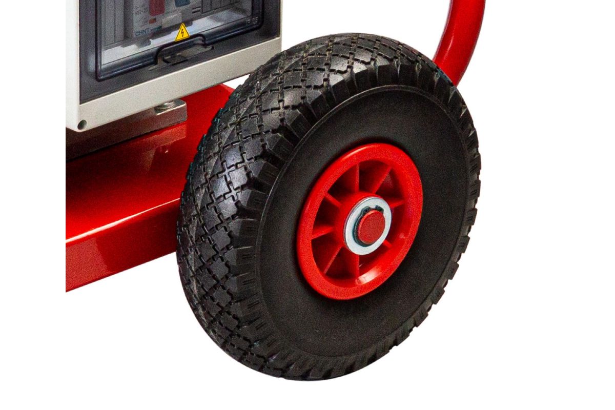 • Мобильность электрического опрессовочного насоса Brexit BrexTEST PRO 2000 2020035: аппарат закреплен на передвижной раме на колесах для удобства транспортировки и перемещения по территории строительного объекта.
