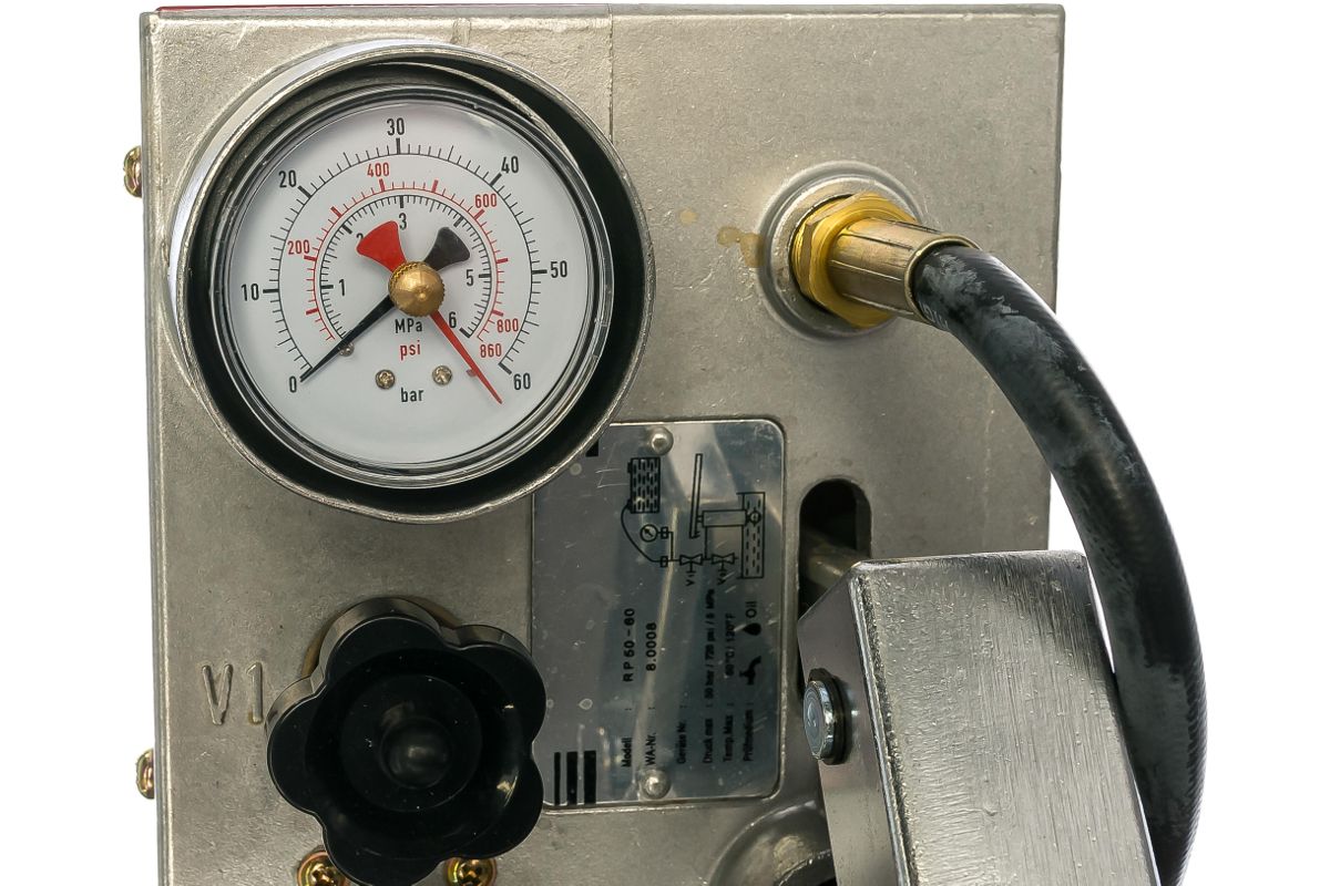 - На манометре отображается давление жидкости в процессе опрессовки;