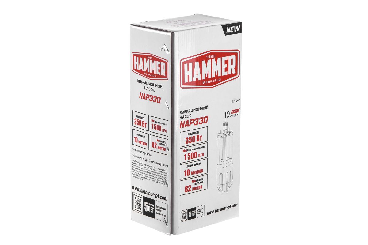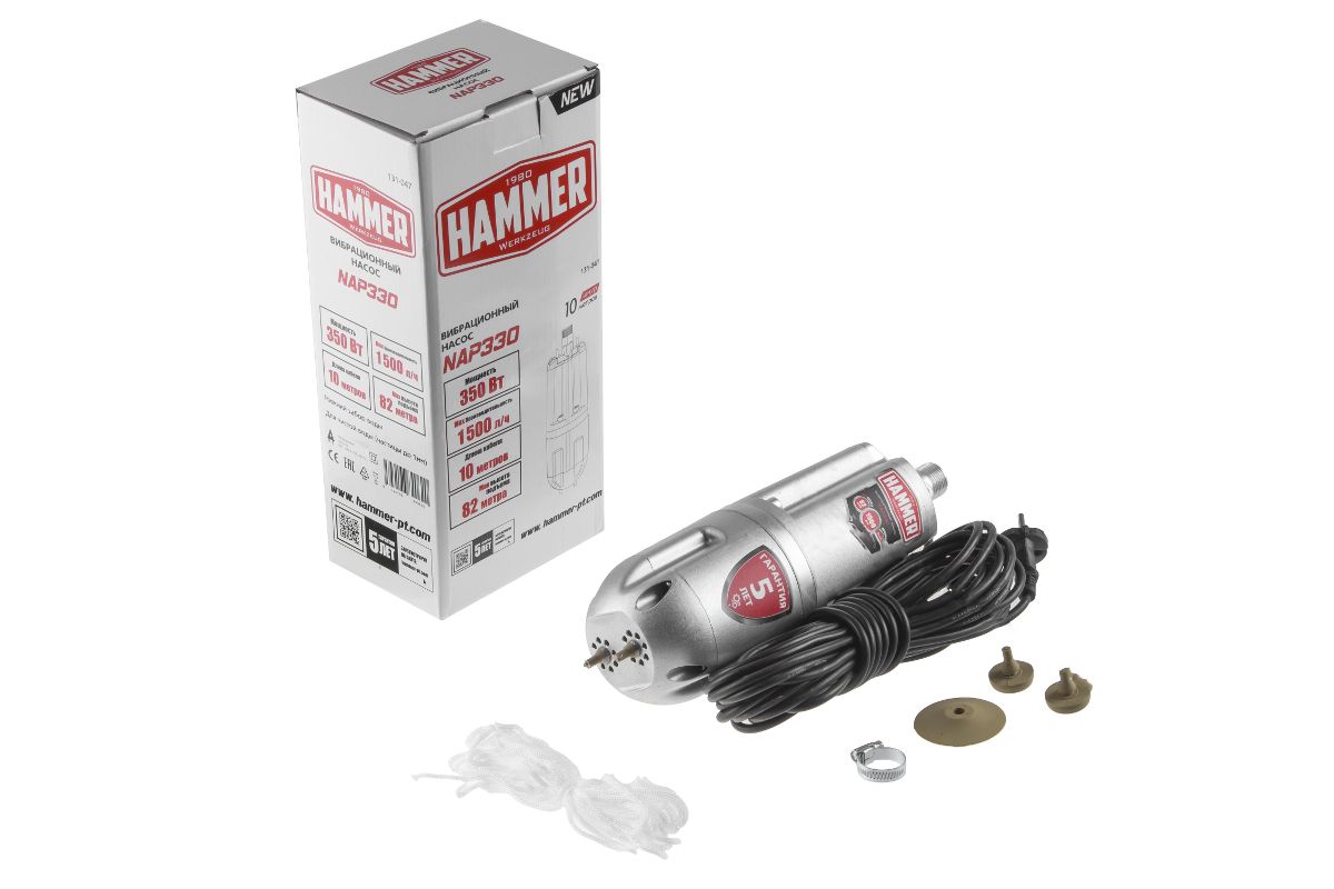 Насос вибрационный Hammer NAP330(10) 350Вт 1500л/ч высота 82м кабель 10м нижний забор воды
