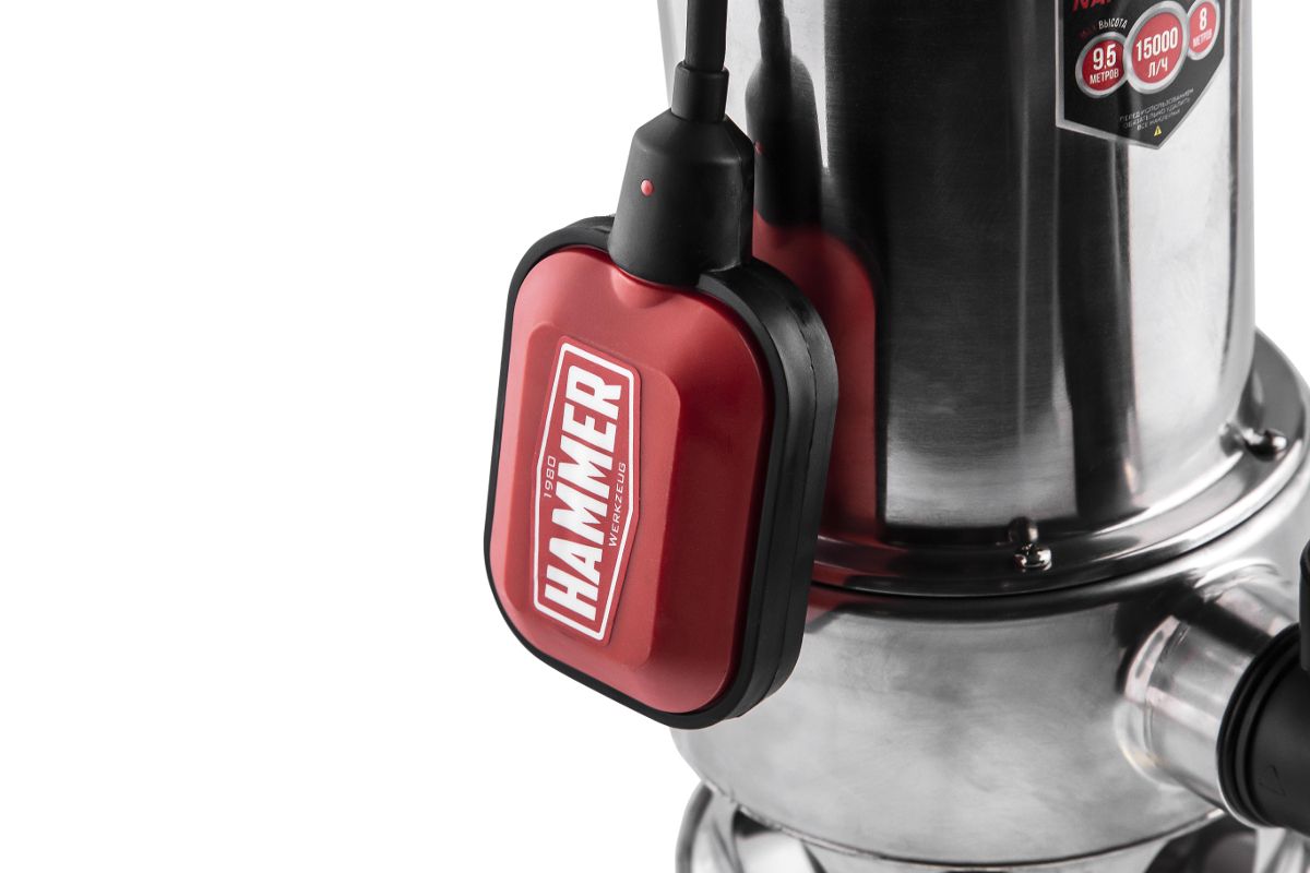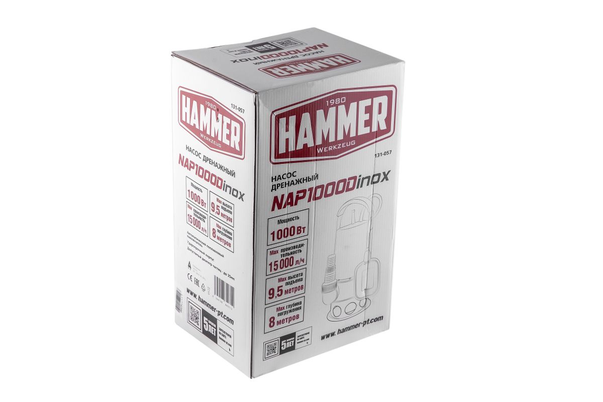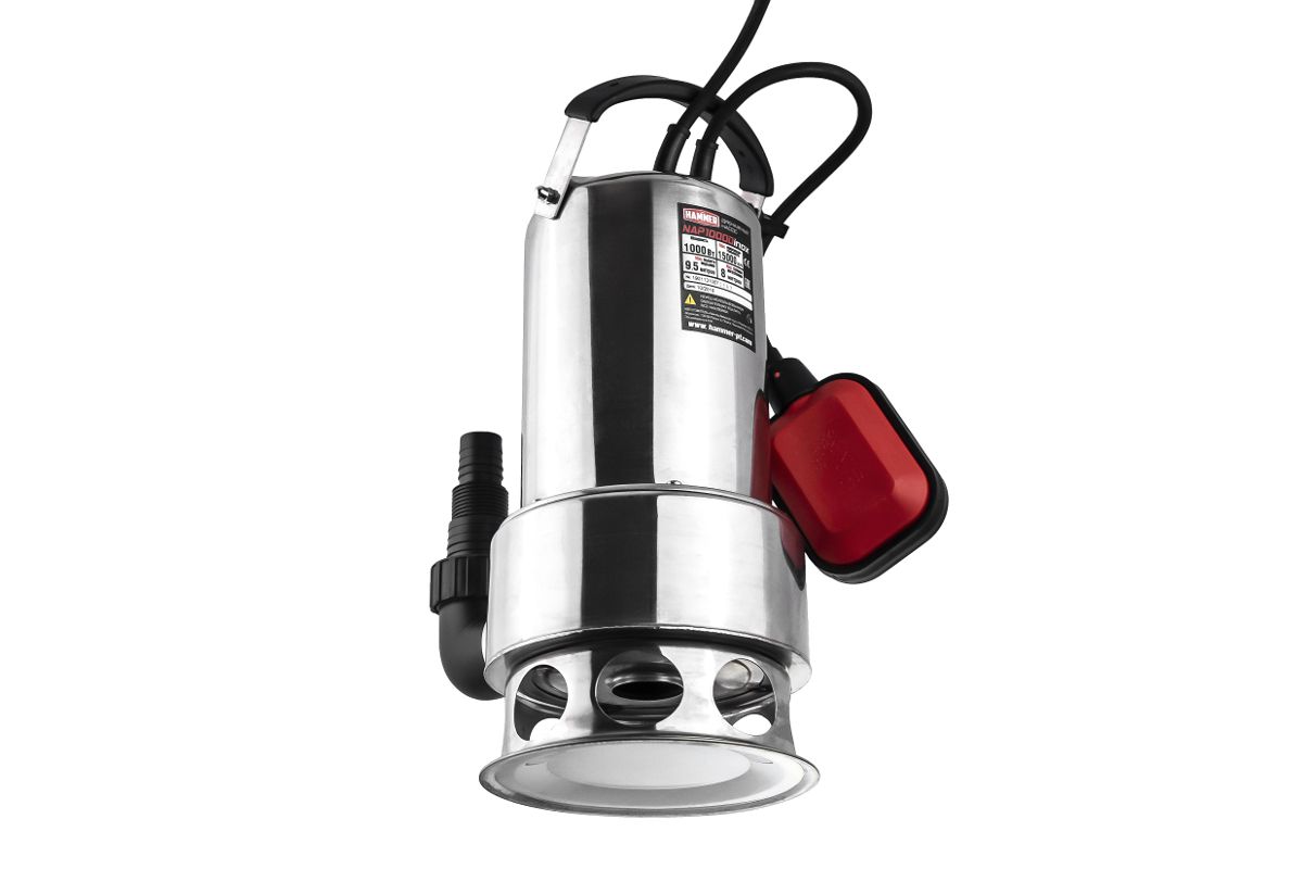 HAMMER NAP1000DInox – дренажный фекальный насос для откачивания загрязнённой воды или отвода сточных вод. Пригодится на даче, автомойке или за городом.