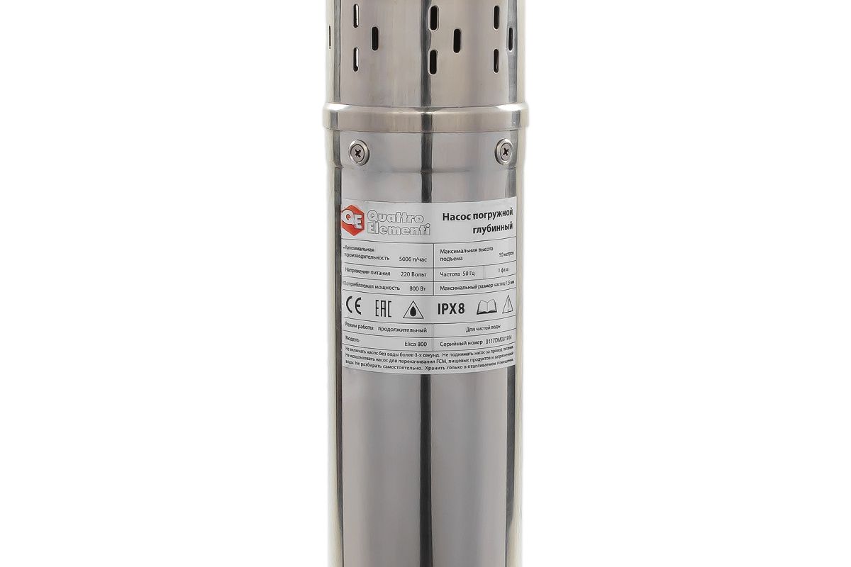 Скважинный насос QUATTRO ELEMENTI ELICA 246-999 800Вт 5000л/ч для чист.воды 50м 10.4кг нерж.корпус