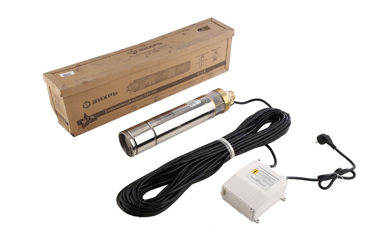 Скважинный насос ВИХРЬ СН-100 предназначен для подачи чистой воды с глубины до 100 м. За один час перекачивает до 2400 л. Максимальная глубина забора 35 м.
