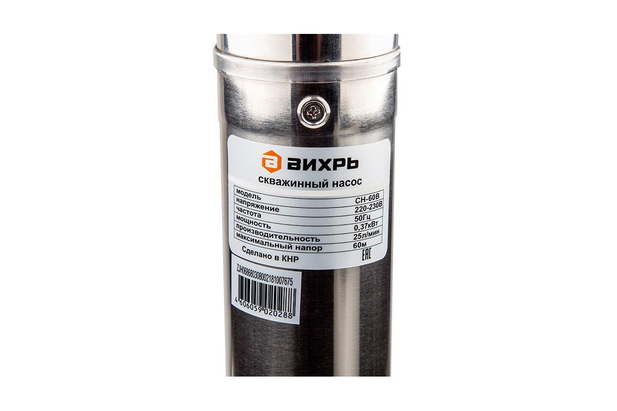 - Корпус из нержавеющей стали - долгий срок службы скважинного насоса Вихрь СН-60B 68/3/8;