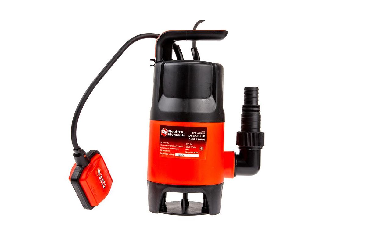QUATTRO ELEMENTI Drenaggio 400 F Promo – дренажный насос для перекачки грязной воды. Производительность 6800 л/час. Пригодится для обеспечения технической водой дачи, осушения канав, прудов, подтоплений и т.д.