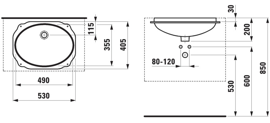 - Тип монтажа врезной под столешницу