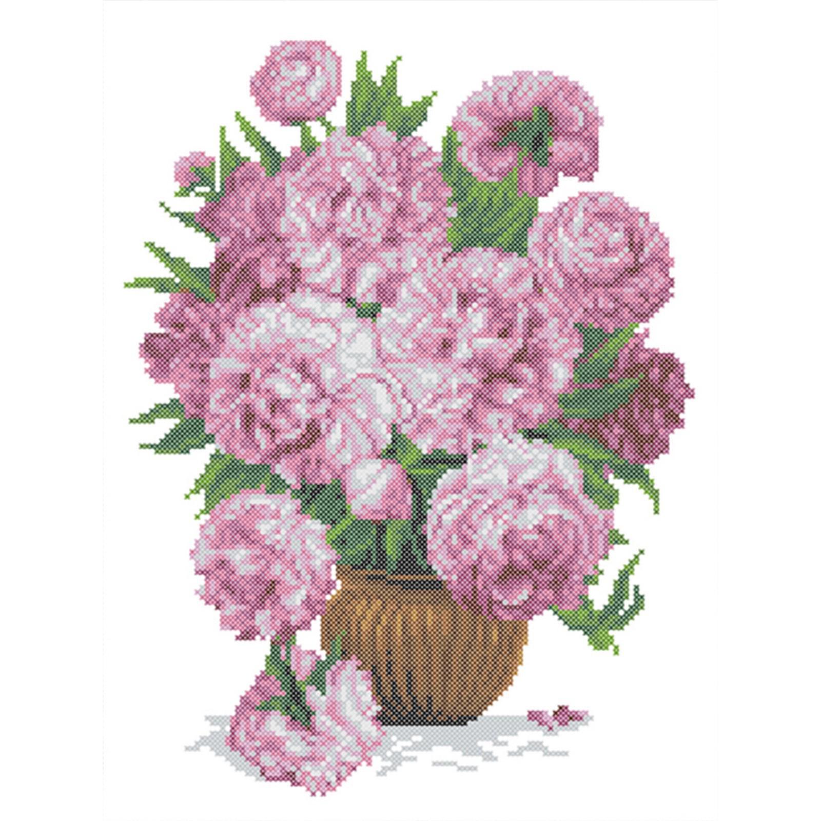 Канва с нанесённым рисунком для вышивки крестиком «Пионы в горшке», размер 25x33 см
