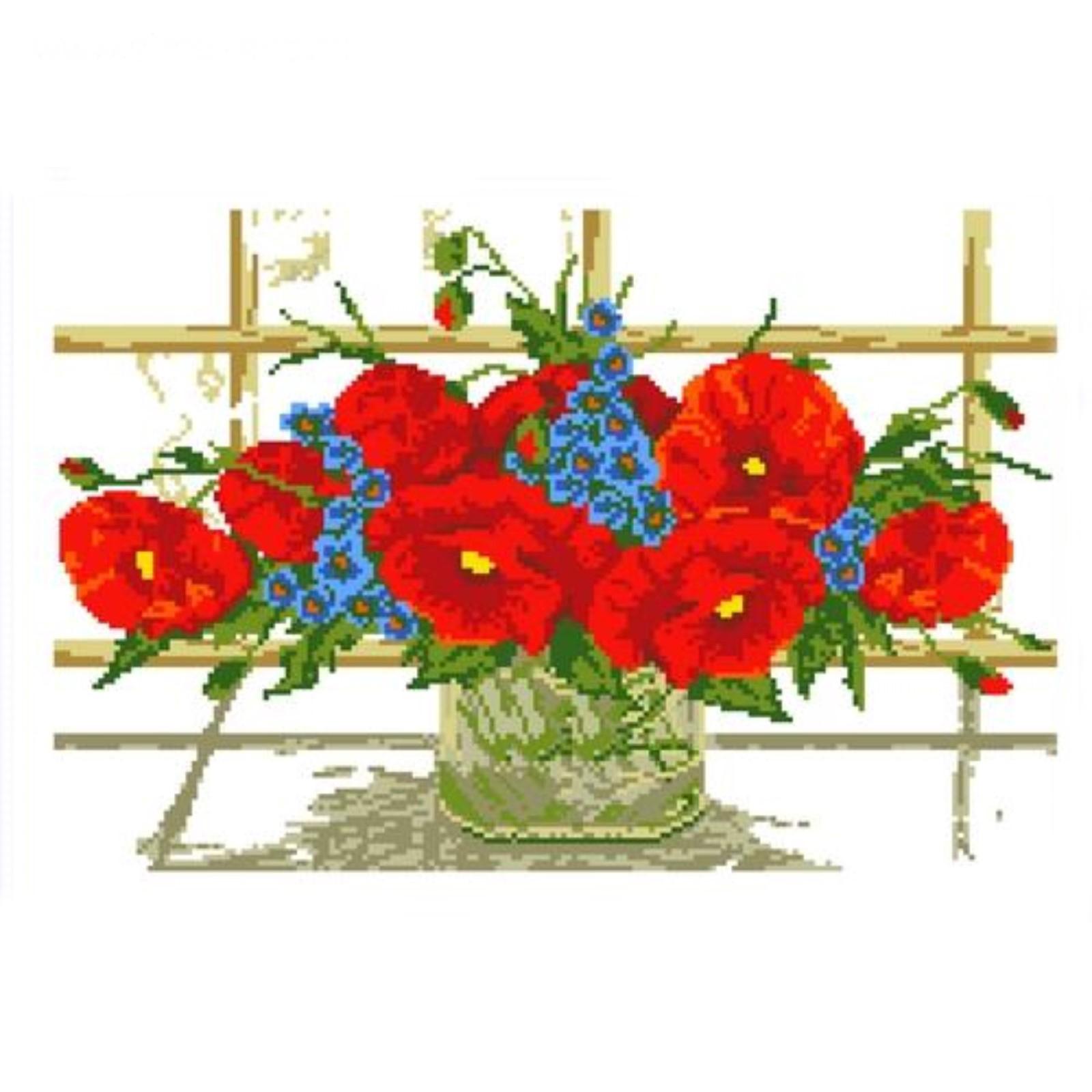 Канва с нанесённым рисунком для вышивки крестиком «Маки у окна», размер 22x30 см