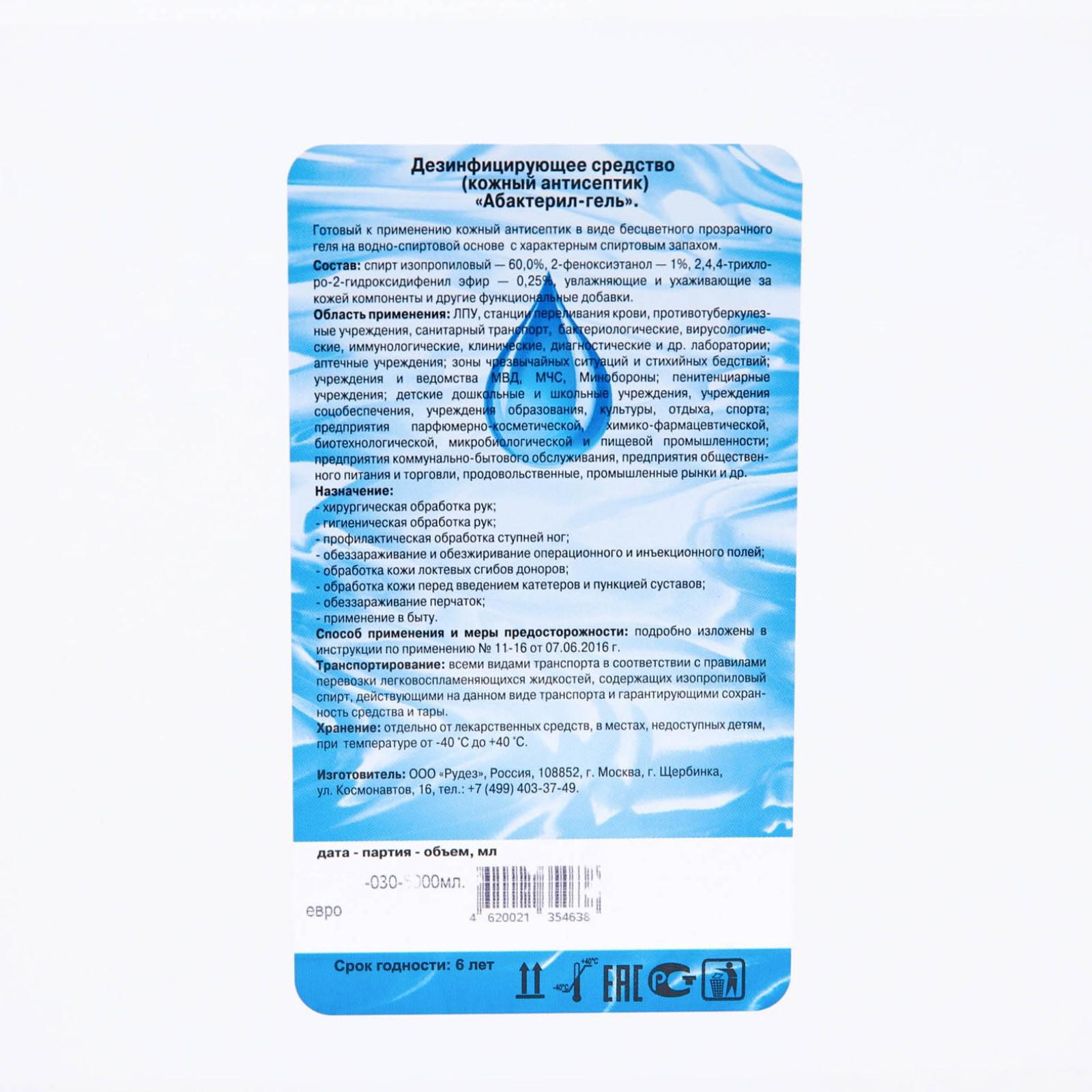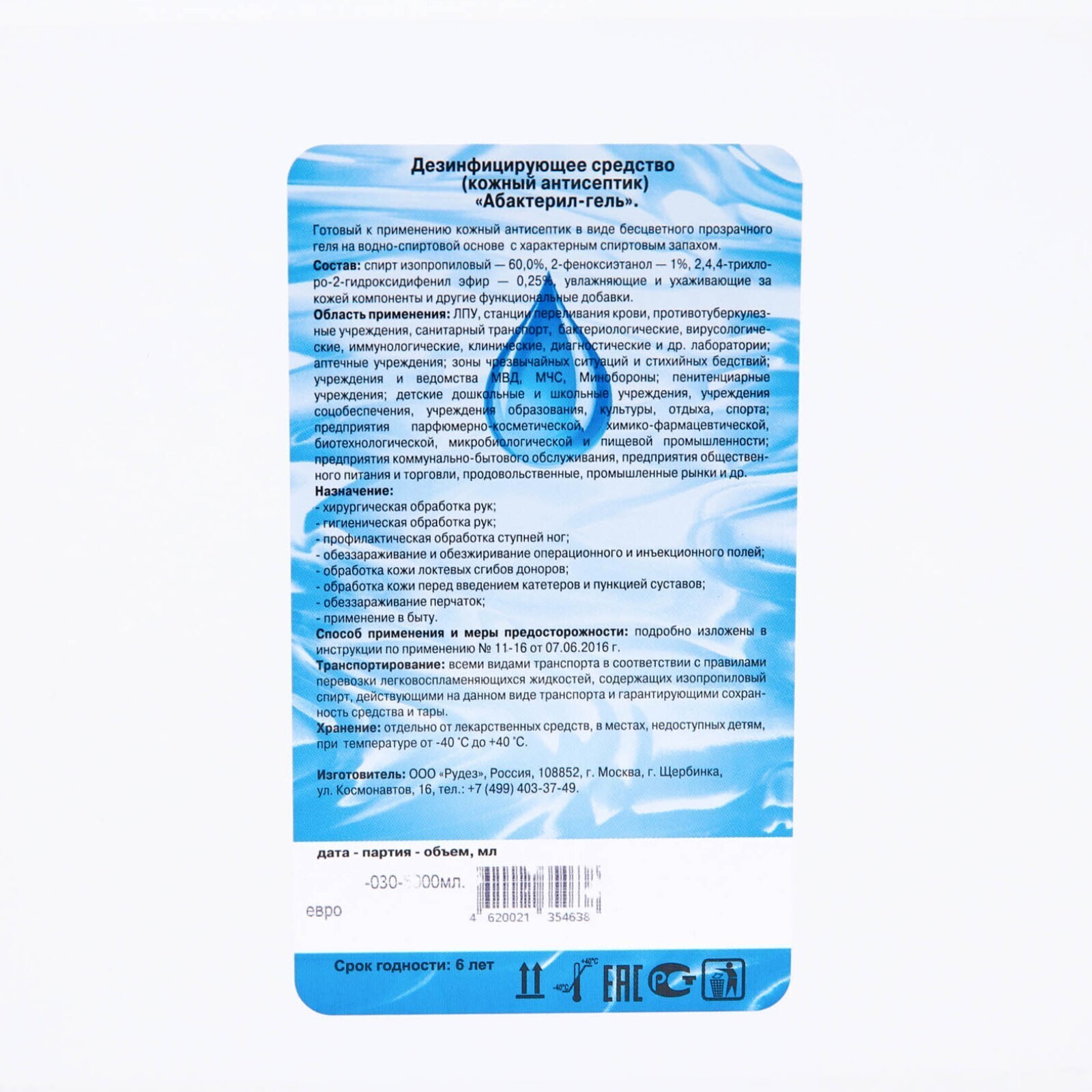 Характеристика: Дезинфицирующее средство (кожный антисептик) «Абактерил-гель» представляет собой готовый к применению кожный антисептик в виде бесцветного прозрачного геля на водно-спиртовой основе с характерным спиртовым запахом и/или запахом применяемой отдушки. Средство обладает пролонгированным действием в течение 6 часов.