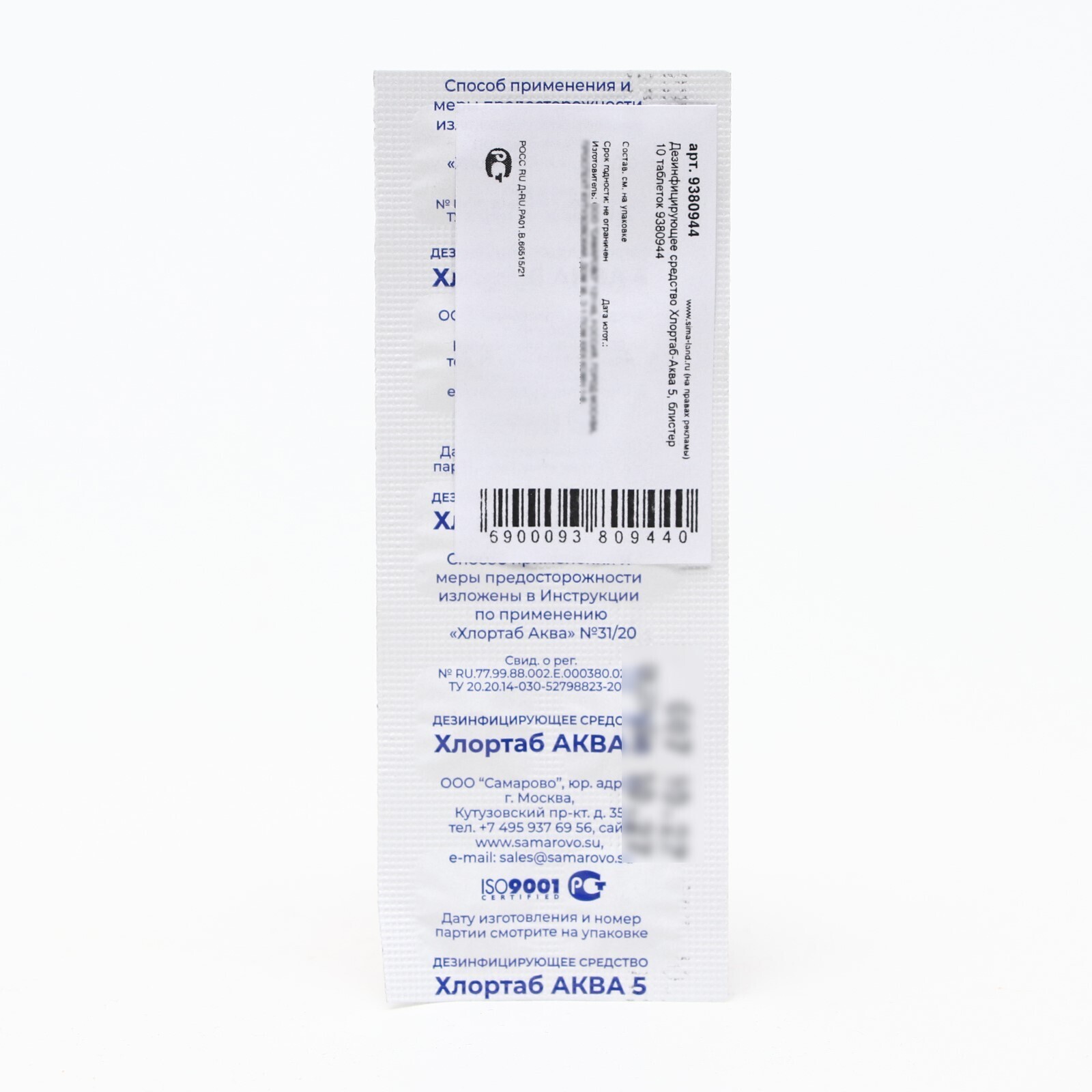Дезинфицирующее средство для обезараживания питьевой воды Хлортаб-Аква, 5 блистеров по 10 таблеток