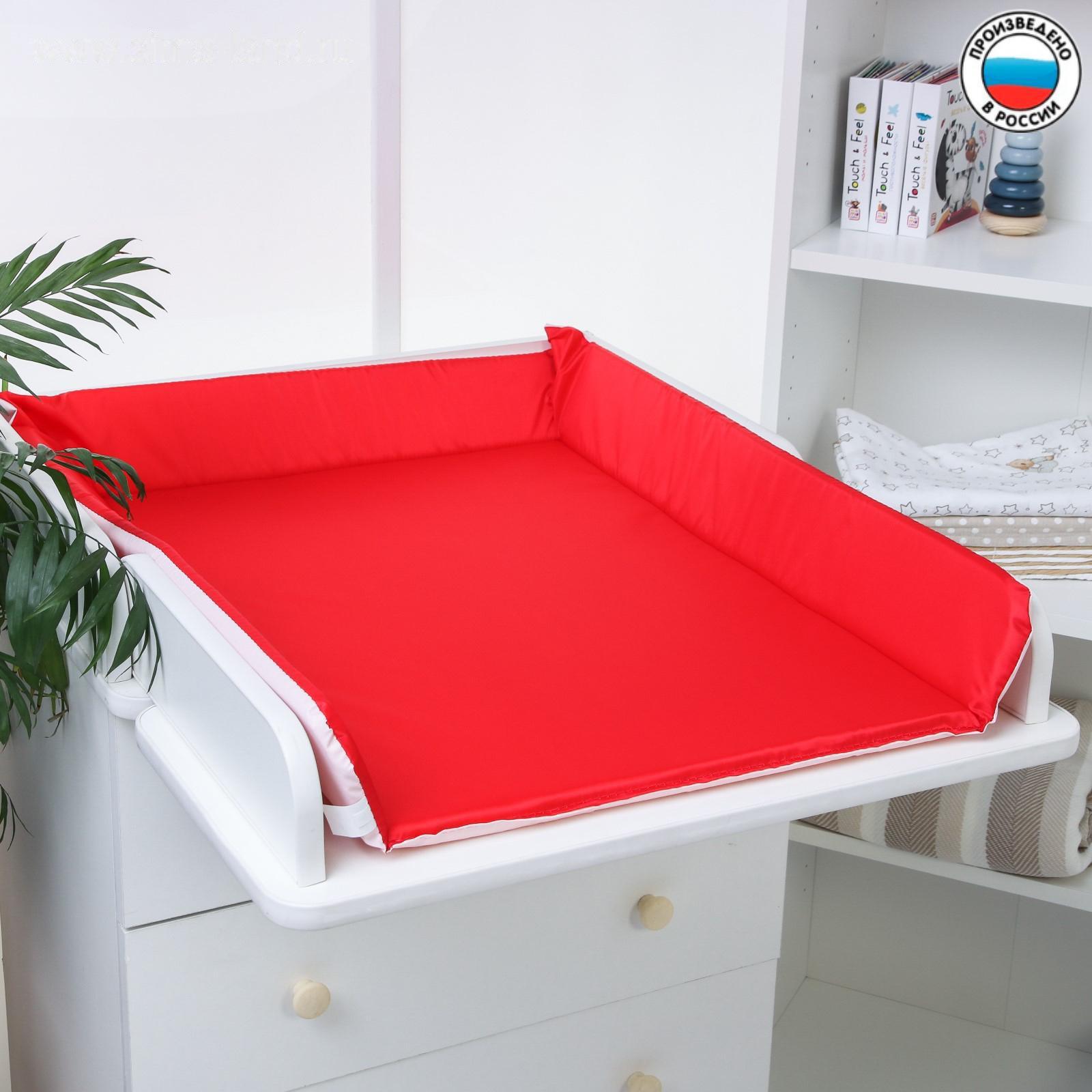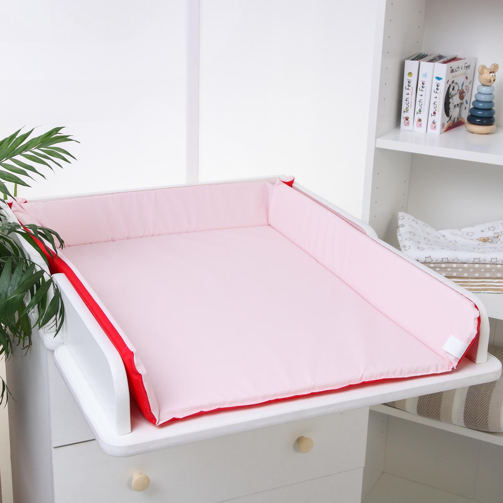 Матрасик для пеленального столика/комода двусторонний со складными бортиками 82х72 см., цвет красный/розовый