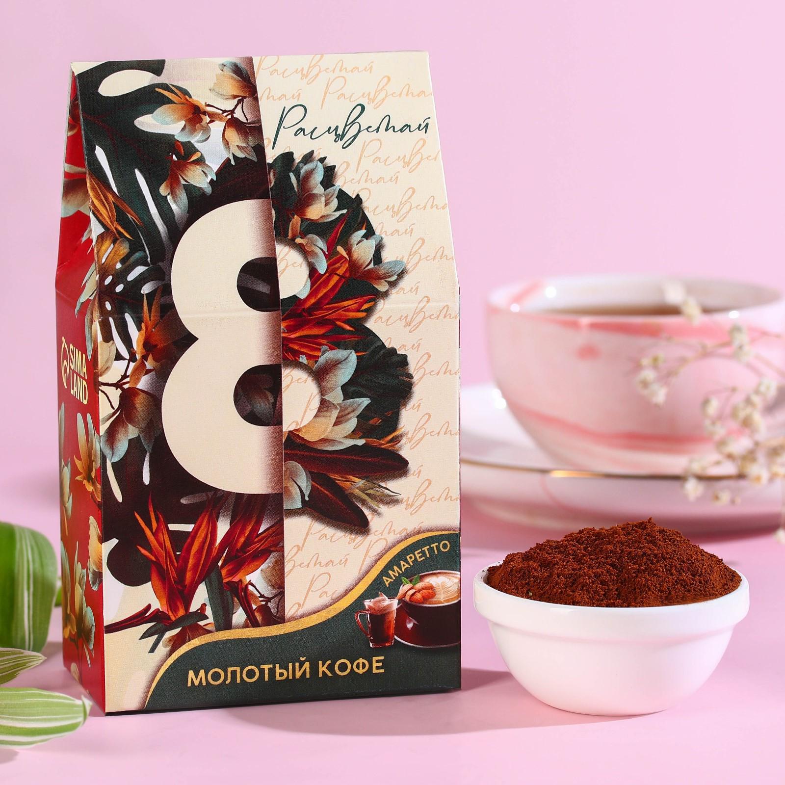 Кофе молотый «Расцветай»,вкус: амаретто, арабика с кофеином, 30 г.