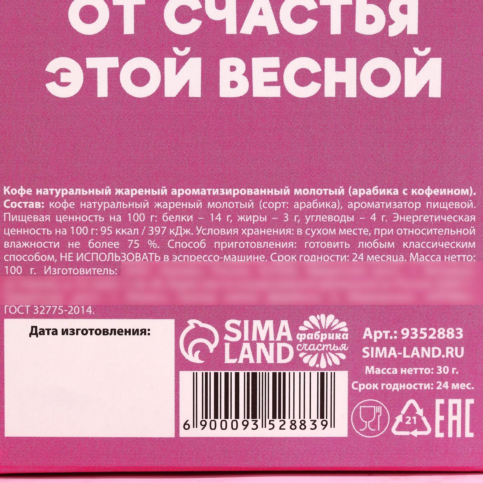 Состав: кофе натуральный жареный молотый (сорт: арабика), ароматизатор пищевой.