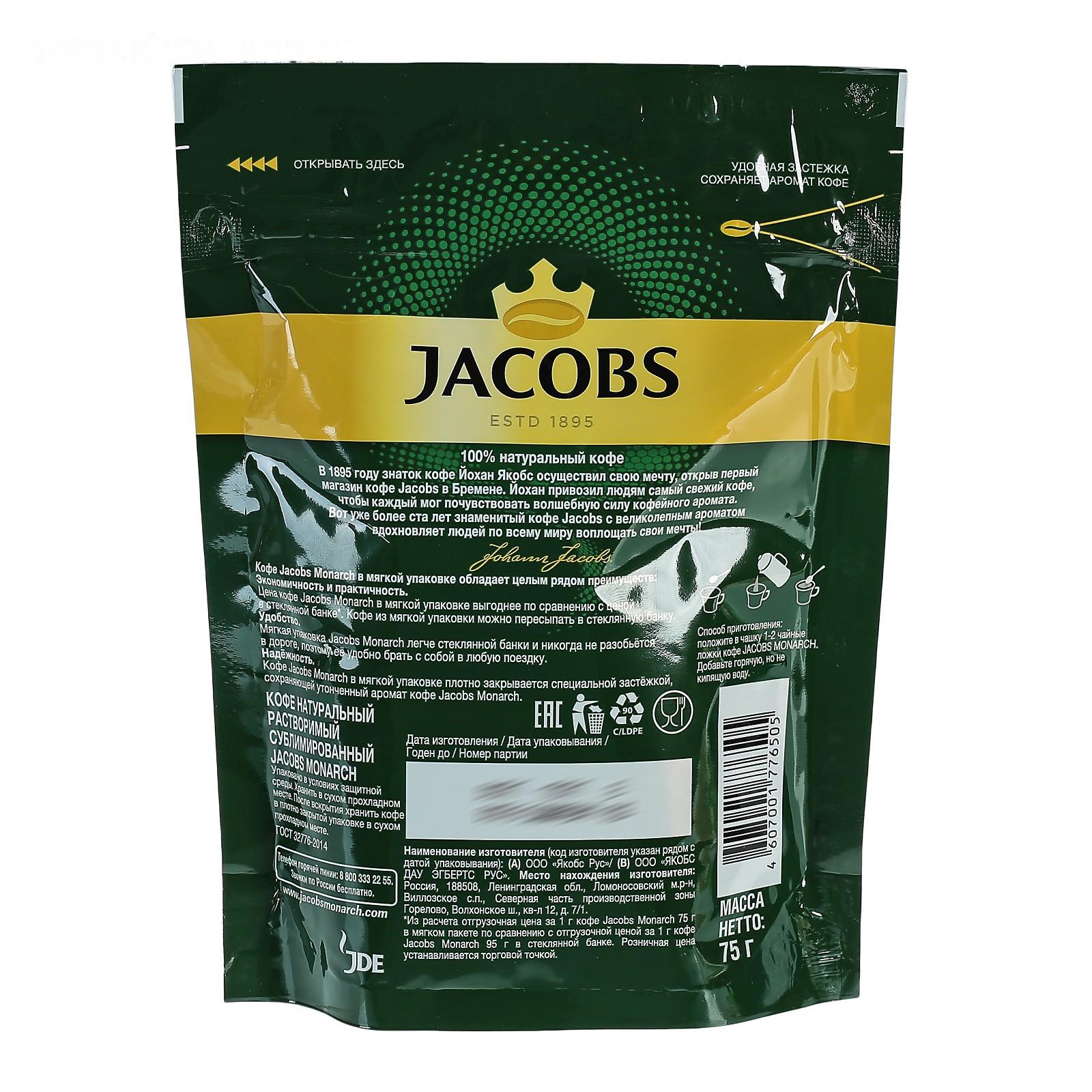 Кофе Jacobs Monarch, натуральный растворимый, сублимированный, 75 г