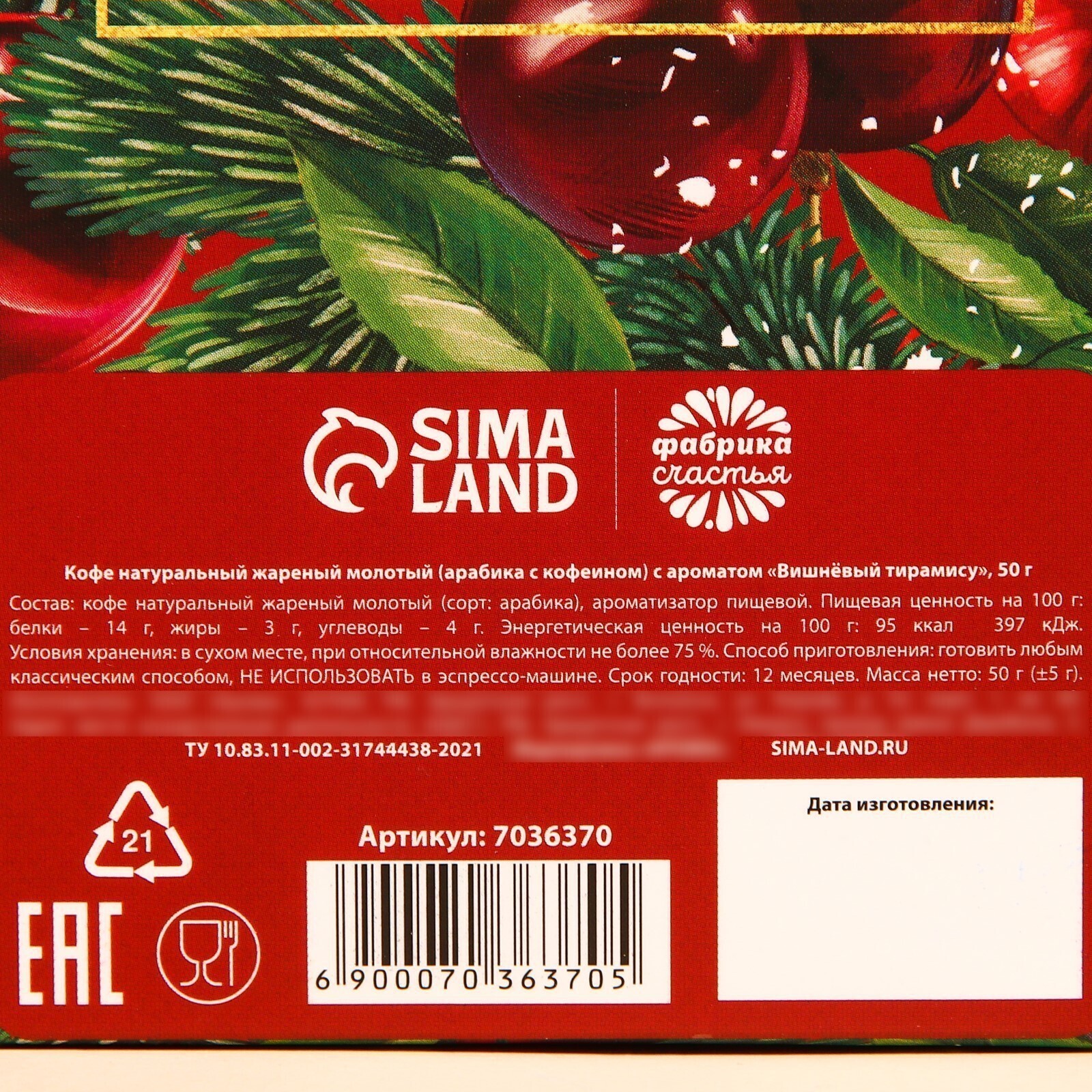 Кофе молотый «Пряного 2023», вкус: вишневый тирамису, 50 г.