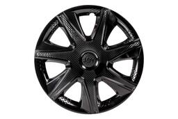 Колпаки изготовлены из ударопрочного полистирола, имеют модную текстуру имитирующую карбон. Снабжены надежными универсальными креплениями позволяющие обеспечивать равномерное распределение давления на все защелки.