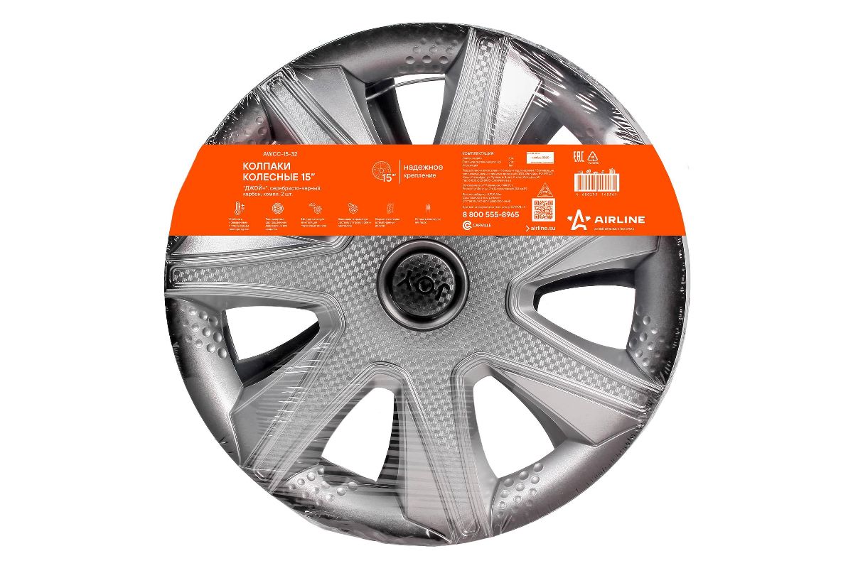 Колпаки колесные 15'' ''Джой +'', серебристо-черный, карбон, компл. 2 шт. (AWCC-15-32) AIRLINE