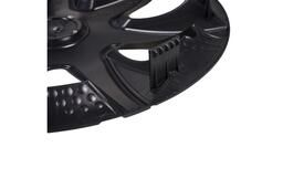 Колпаки изготовлены из ударопрочного полистирола, имеют модную текстуру имитирующую карбон. Снабжены надежными универсальными креплениями позволяющие обеспечивать равномерное распределение давления на все защелки.