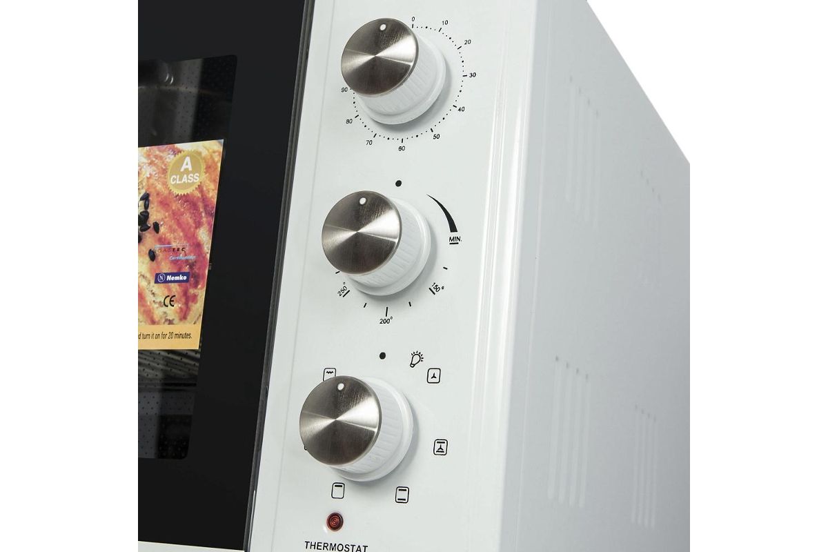 Особенности: гриль, термостат, таймер (90 мин), автоотключение, звуковой сигнал, эмаль лёгкой очистки, уплотнитель стеклянной дверцы, защитное крепление из металла для стекла, широкое термостойкое стекло, плотное крепление нагревательных элементов, нагревательные элементы из нерж. стали (нижний-скрытый), механизм легкого съема дверцы, индикатор термостата, индикатор режима конвекции