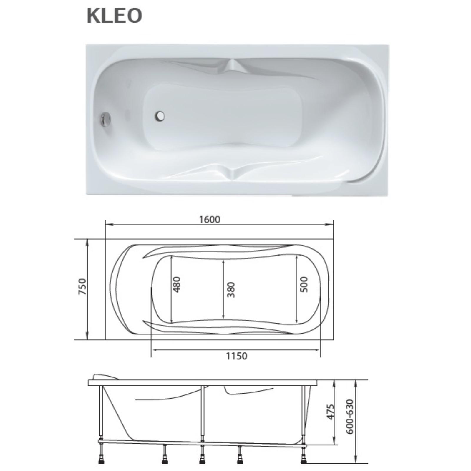 Ванна 1MarKa Kleo из акрила прямоугольной формы и размером 160х75 см рассчитана на пристенную установку. Особенности