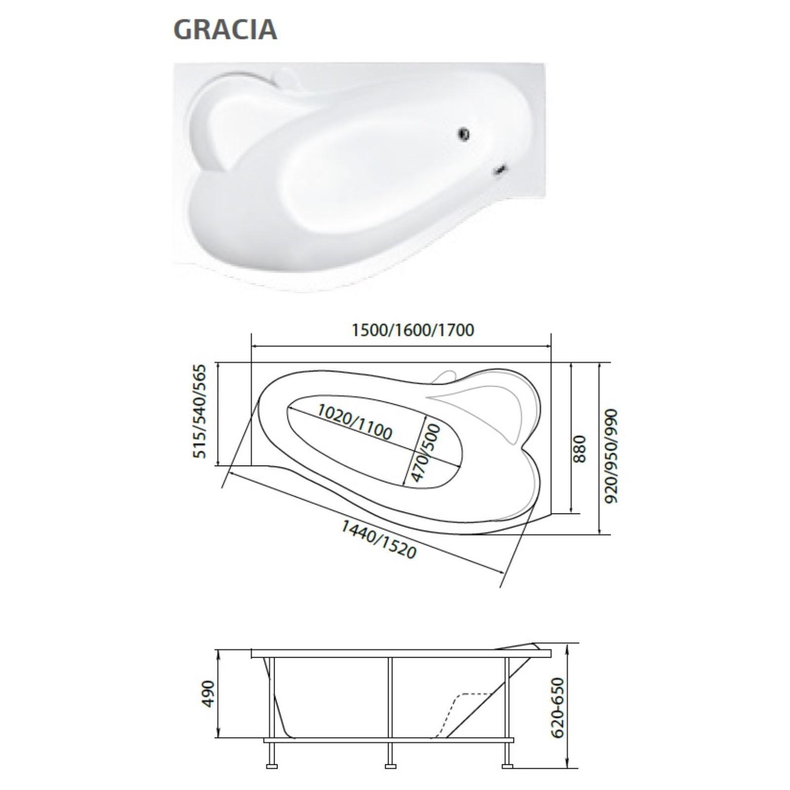 Ванна акриловая 1MarKa GRACIA, 150х90 см, правая