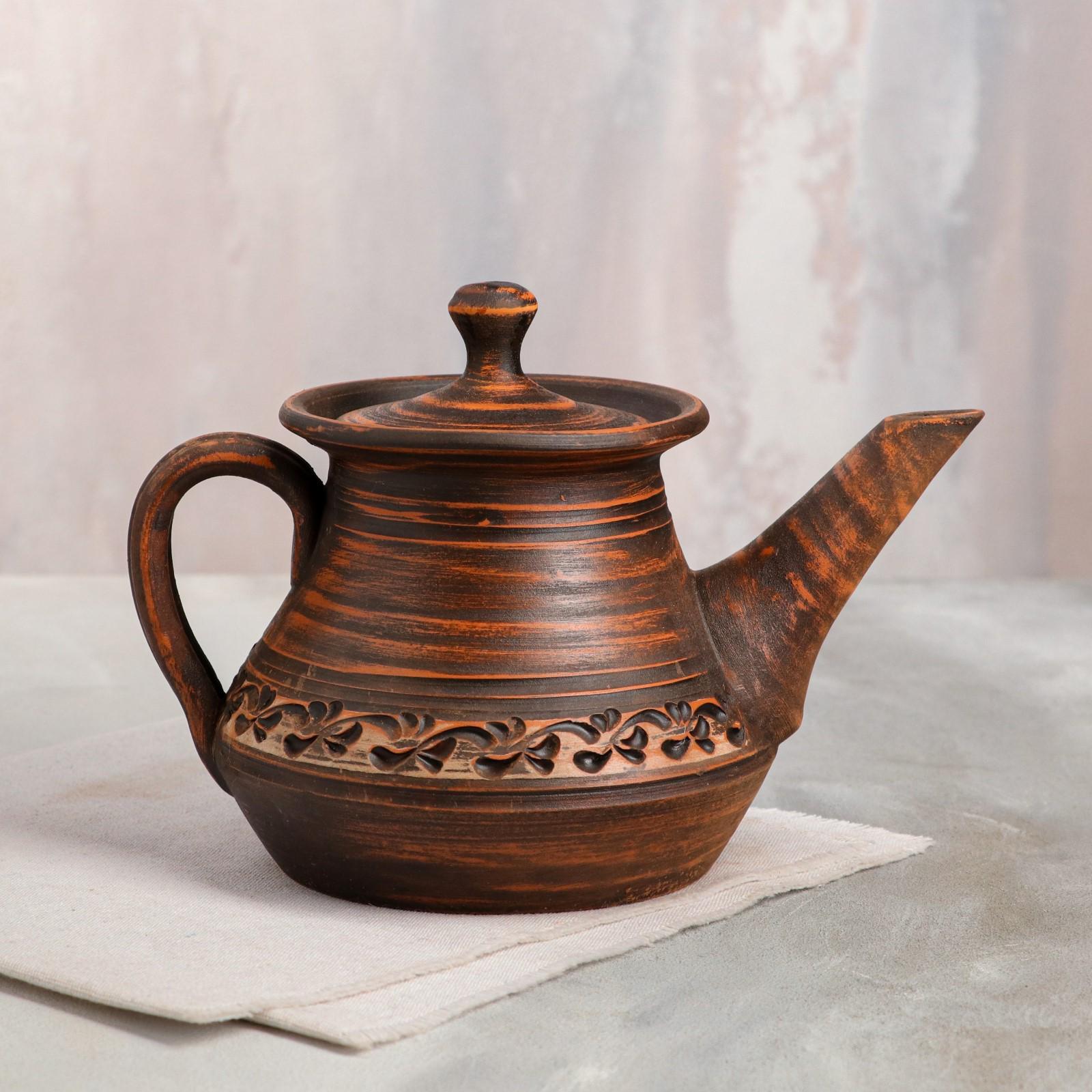 Чайник для заварки "Домашний", ангоб, красная глина, 1 л