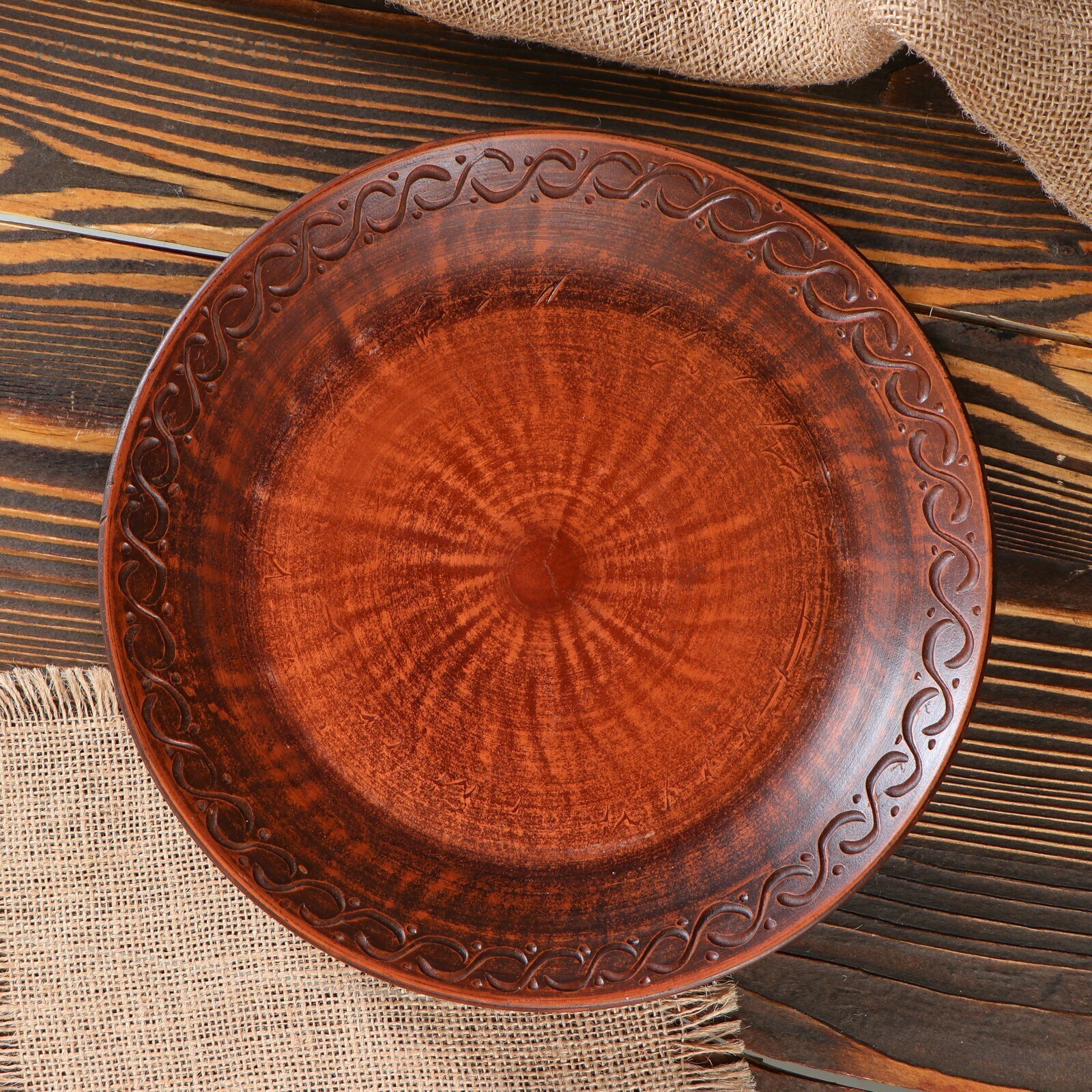 Тарелка "Пицца", плоская, декор, красная глина, 26 см, микс