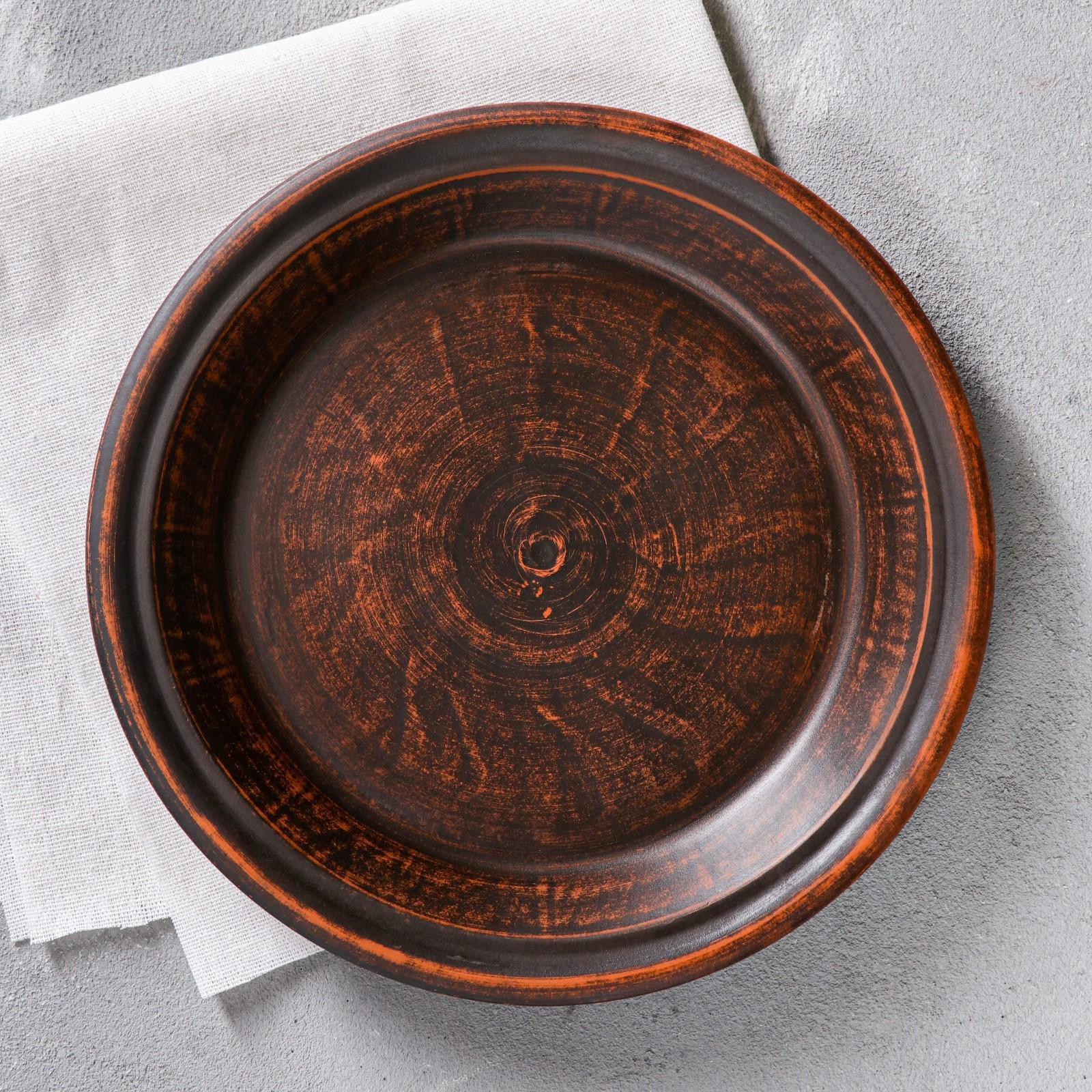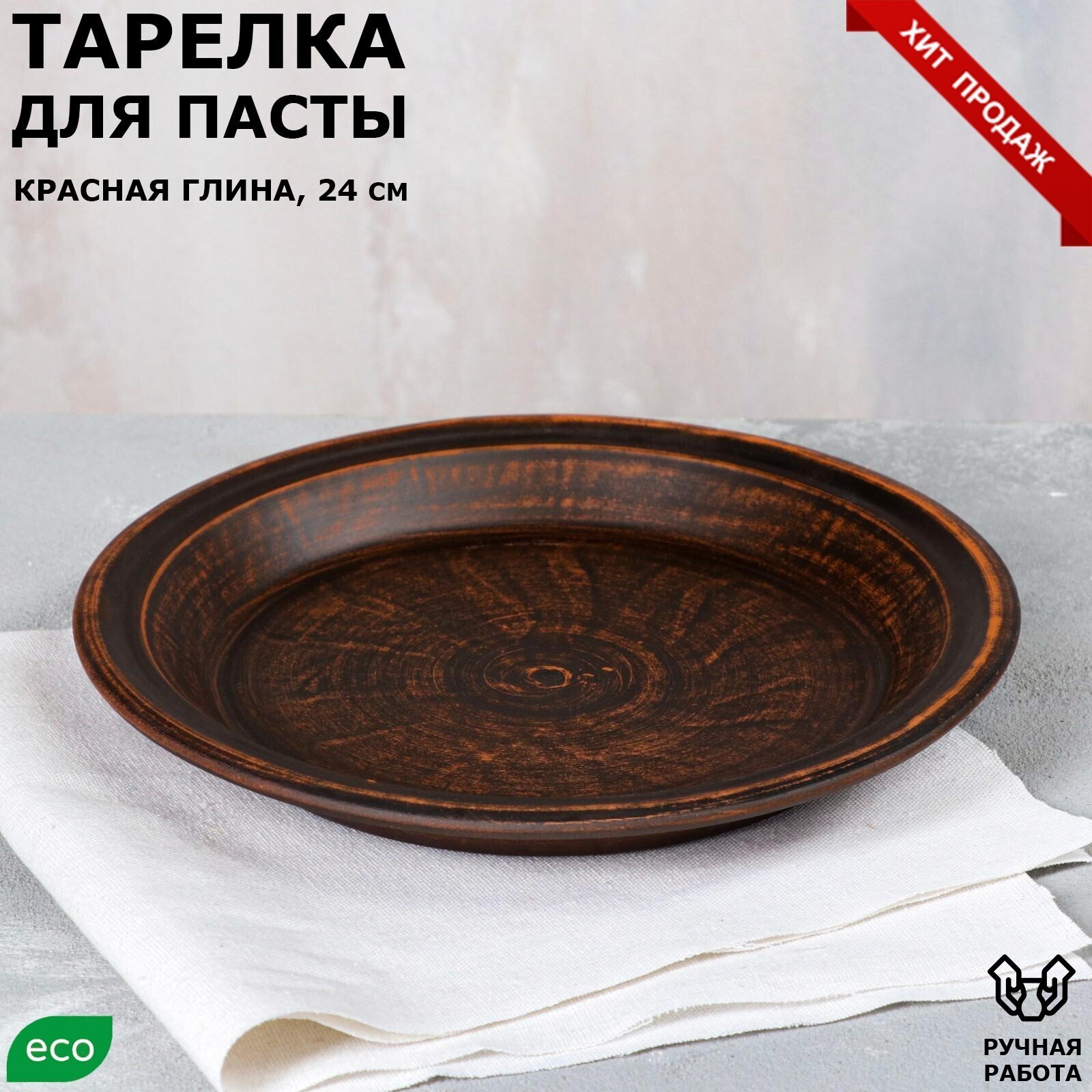 Тарелка "Для пасты", гладкая, красная глина, 24 см, 0.6 л