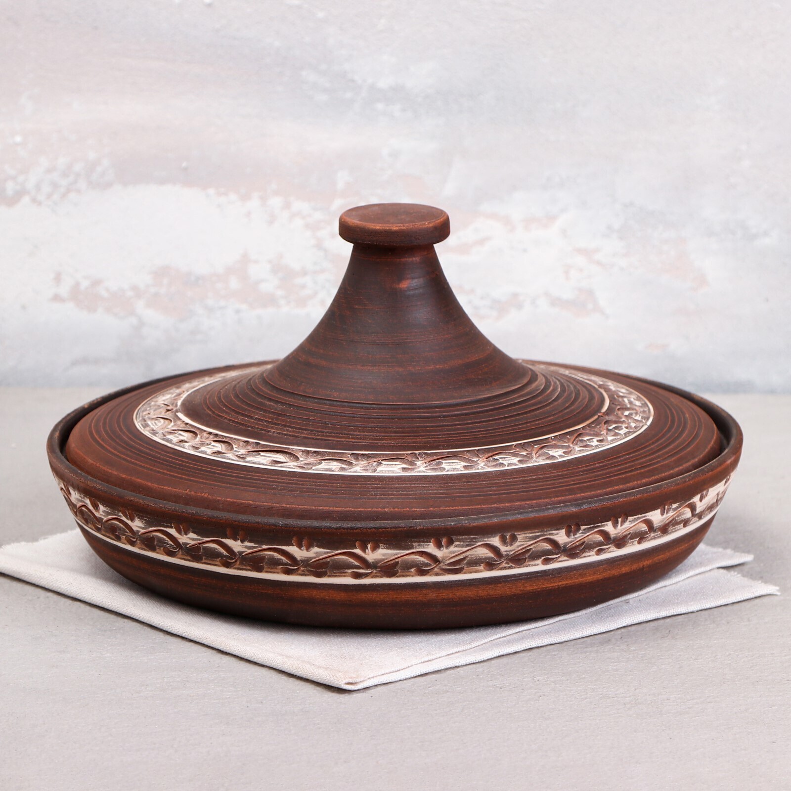 Тажин "Классический", ангоб, красная глина, 2 л