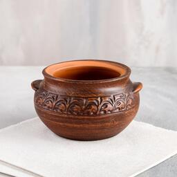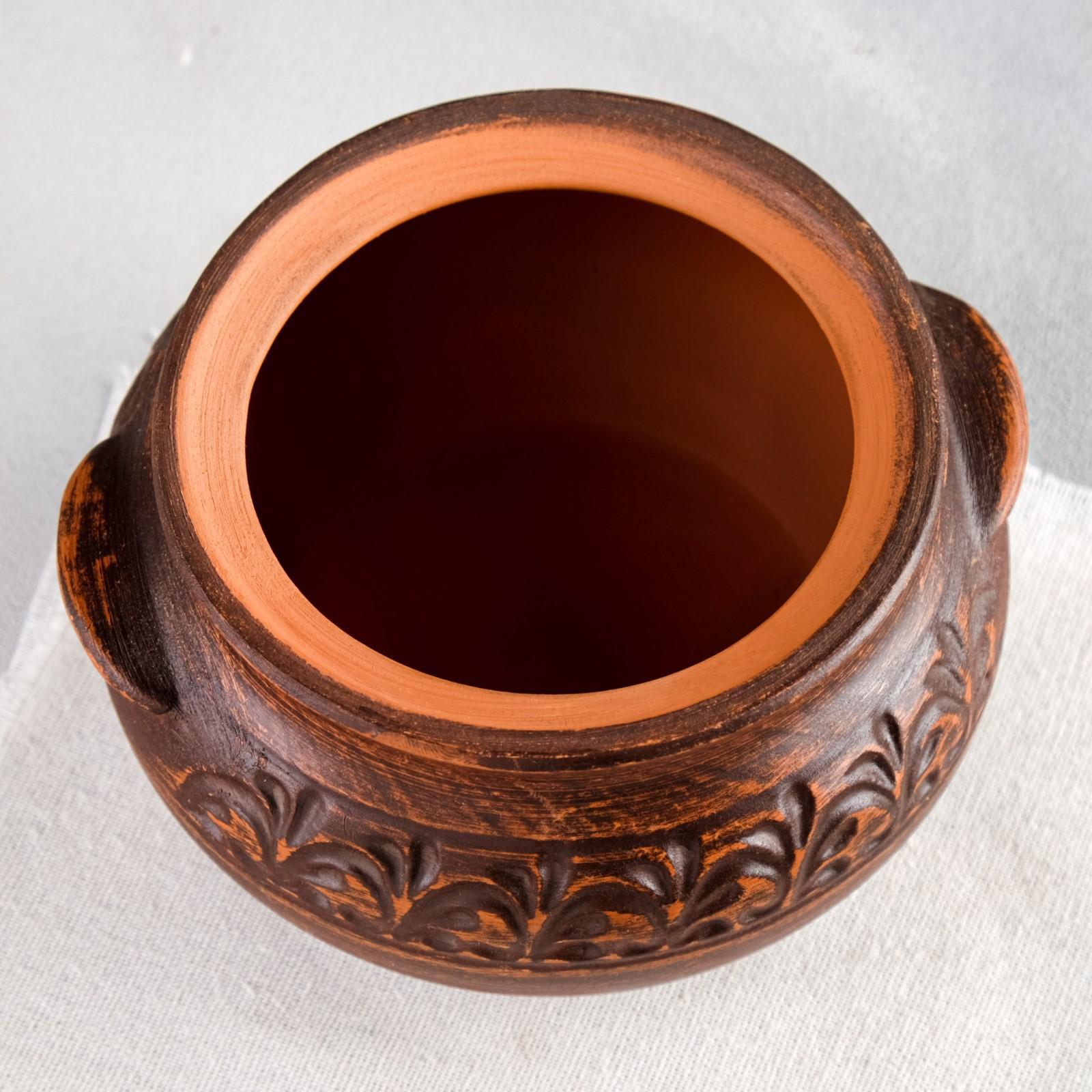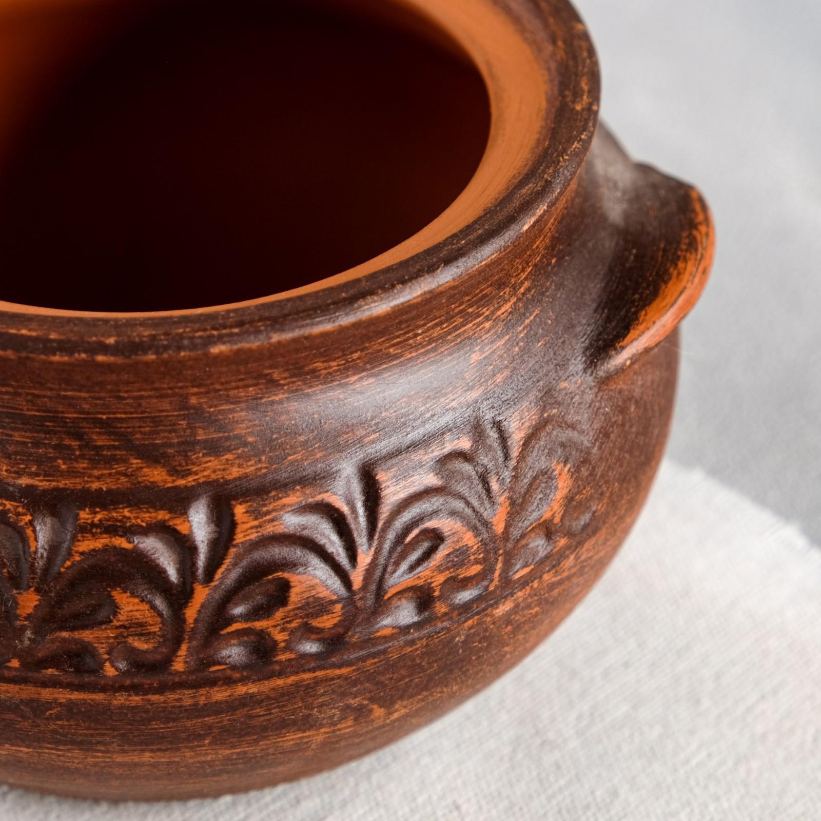 Процесс приготовления пищи в такой посуде очень прост. Изделие изготовлено вручную из красной глины и прекрасно дополнит традиционный интерьер русской кухни.