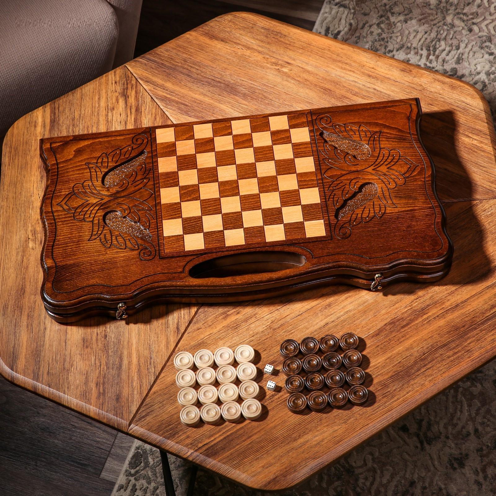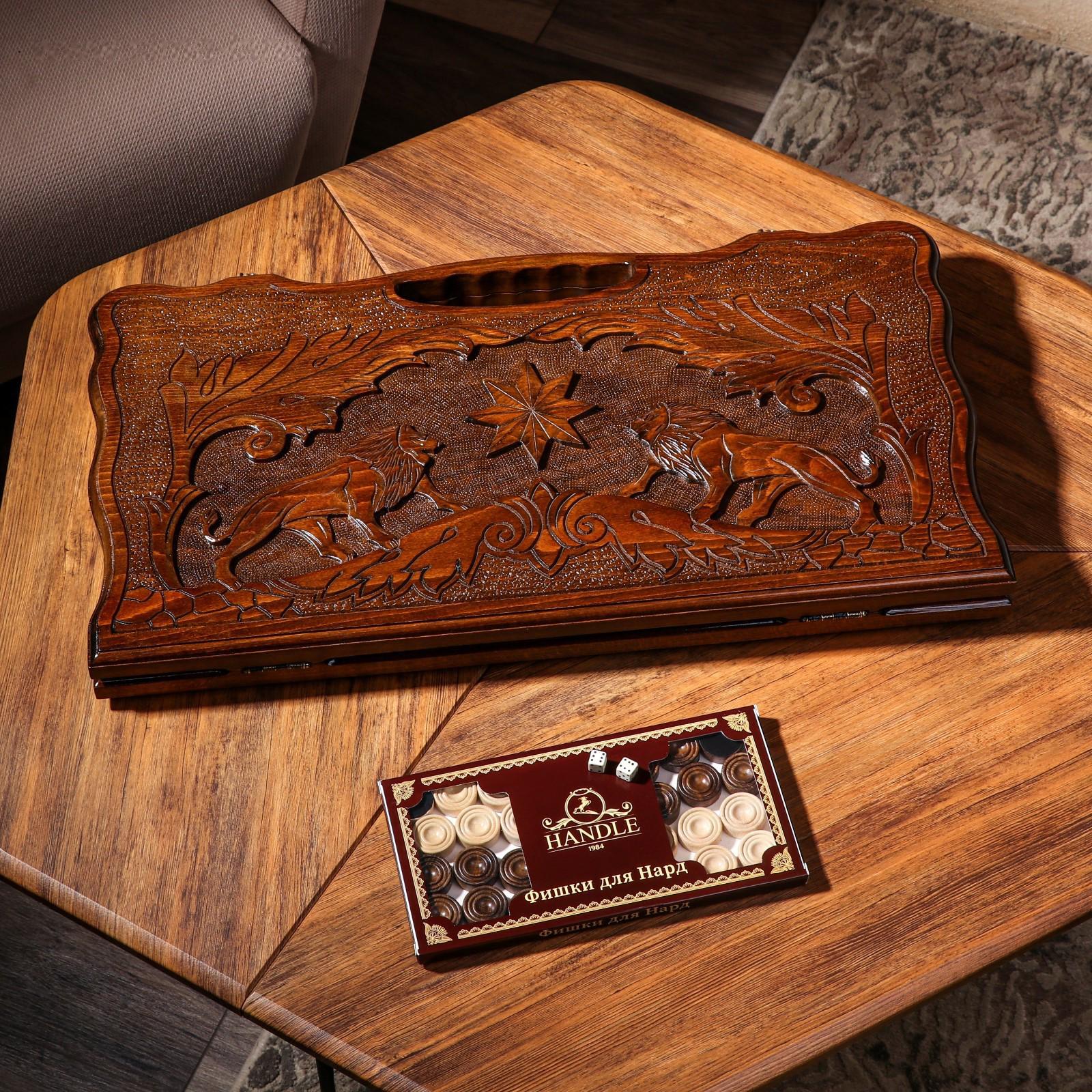 Нарды ручной работы "Звери со звездой", с ручкой, 60х30 см, с шахматным полем, массив ореха, Армения