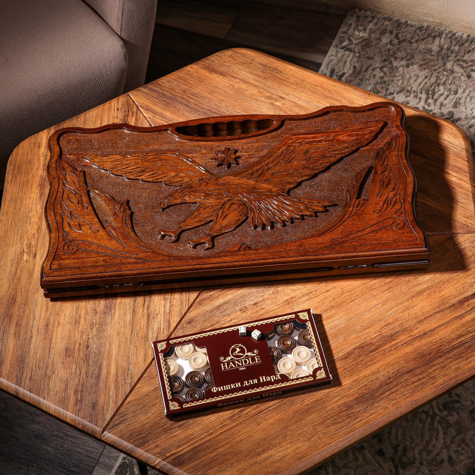 Нарды ручной работы "Орел атакующий" с ручкой, 60х30 см, с шахматным полем, массив ореха, Армения