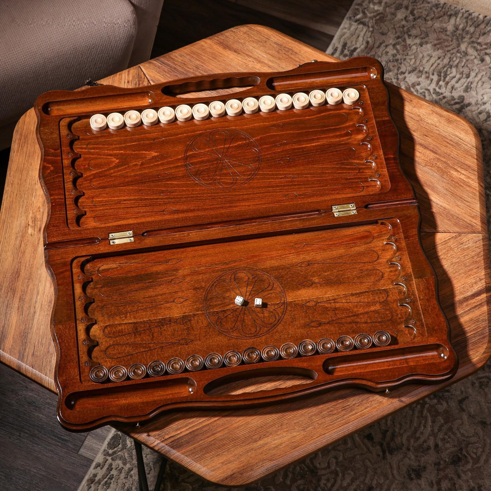 Нарды ручной работы - это классическая настольная игра, проверенная веками. Каждые нарды выполнены мастерами в ручную из высококачественного массива ореха.