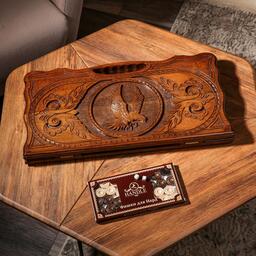 Нарды ручной работы "Орел в полете" с ручкой, 60х30 см, с шахматным полем, массив ореха, Армения