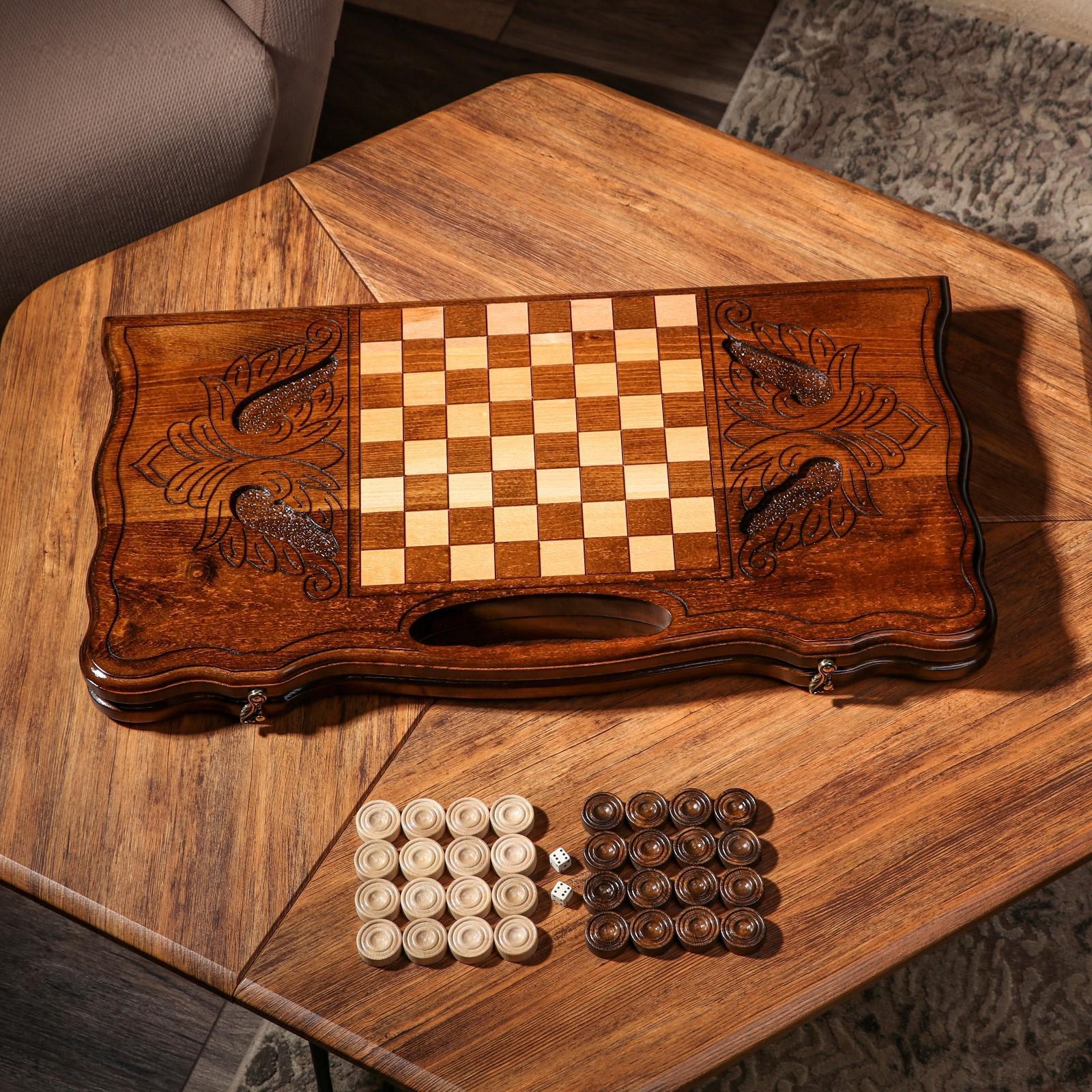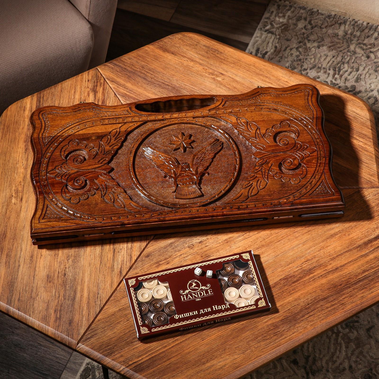 Нарды ручной работы "Герб", с ручкой, 60х30 см, с шахматным полем, массив ореха, Армения