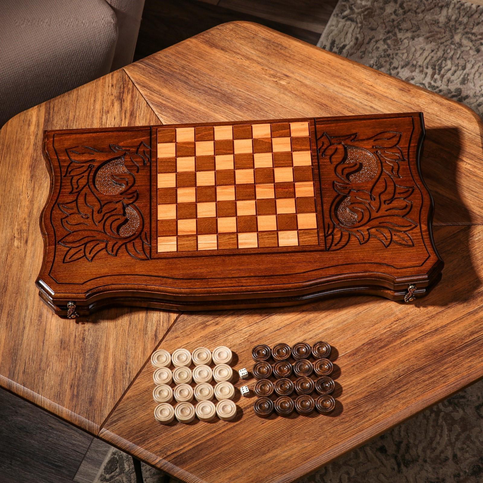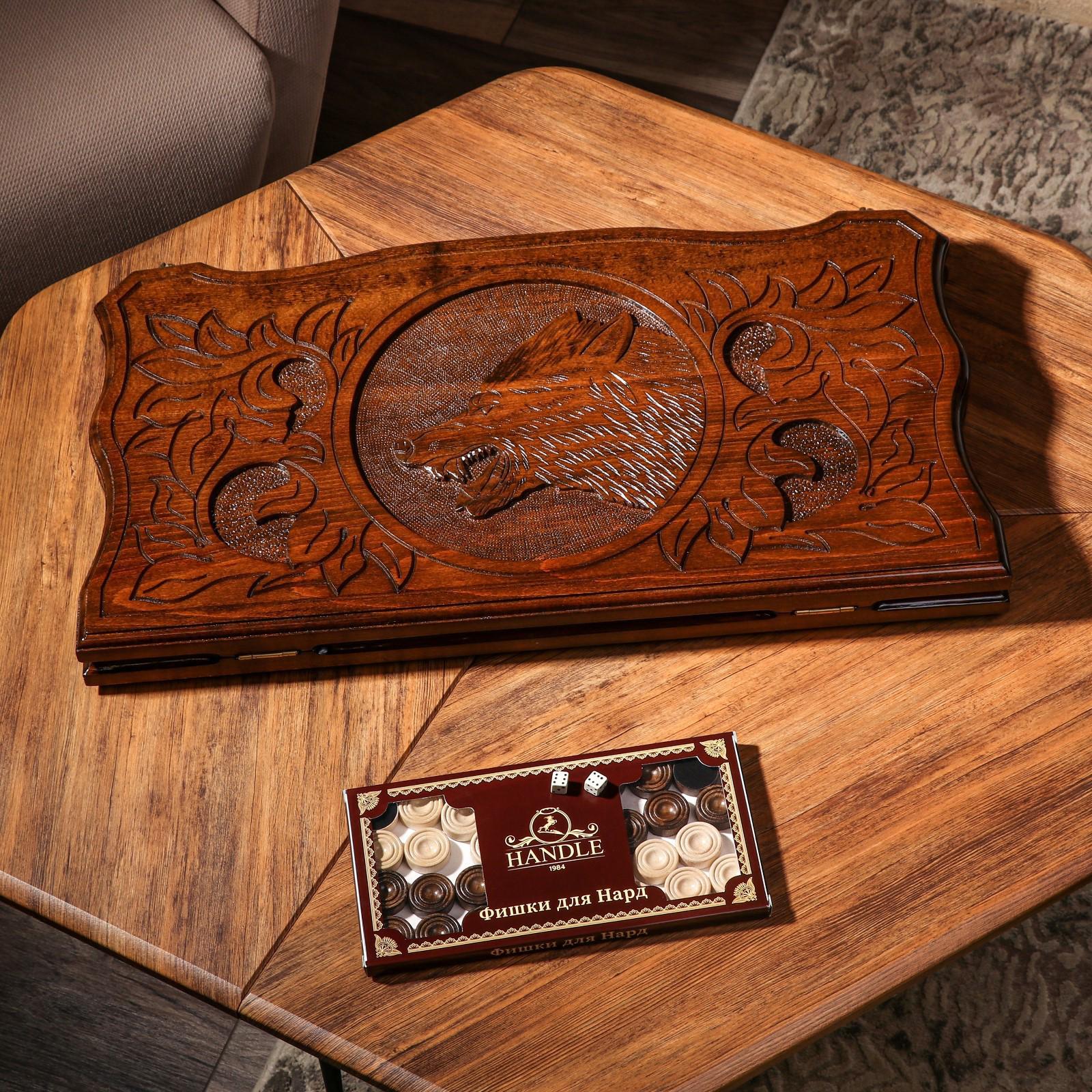 Нарды ручной работы "Волк", 60х30 см, с шахматным полем, массив ореха, Армения