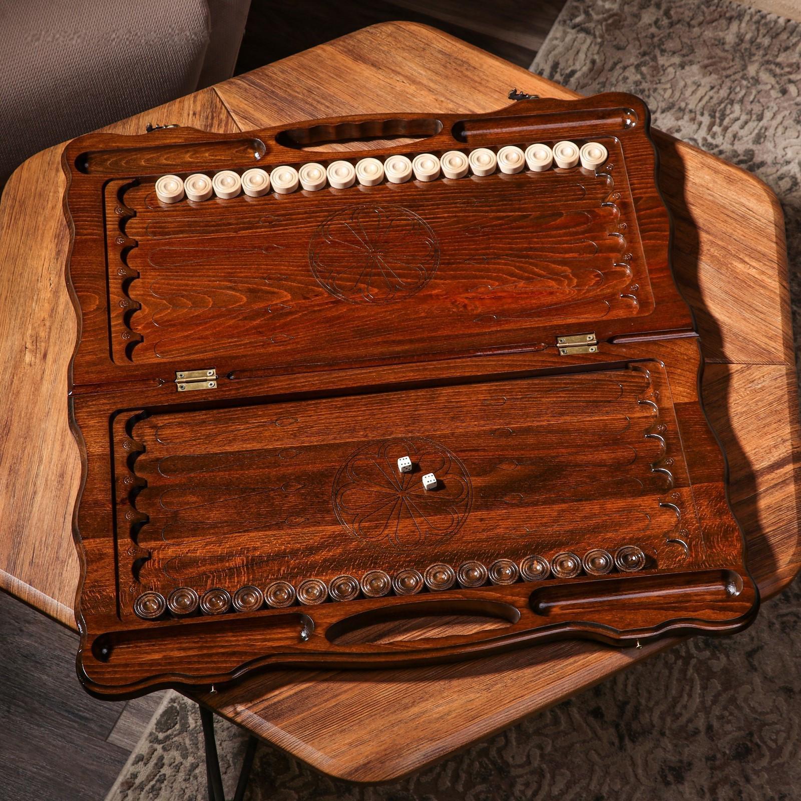 Нарды ручной работы - это классическая настольная игра, проверенная веками. Каждые нарды выполнены мастерами в ручную из высококачественного массива ореха.