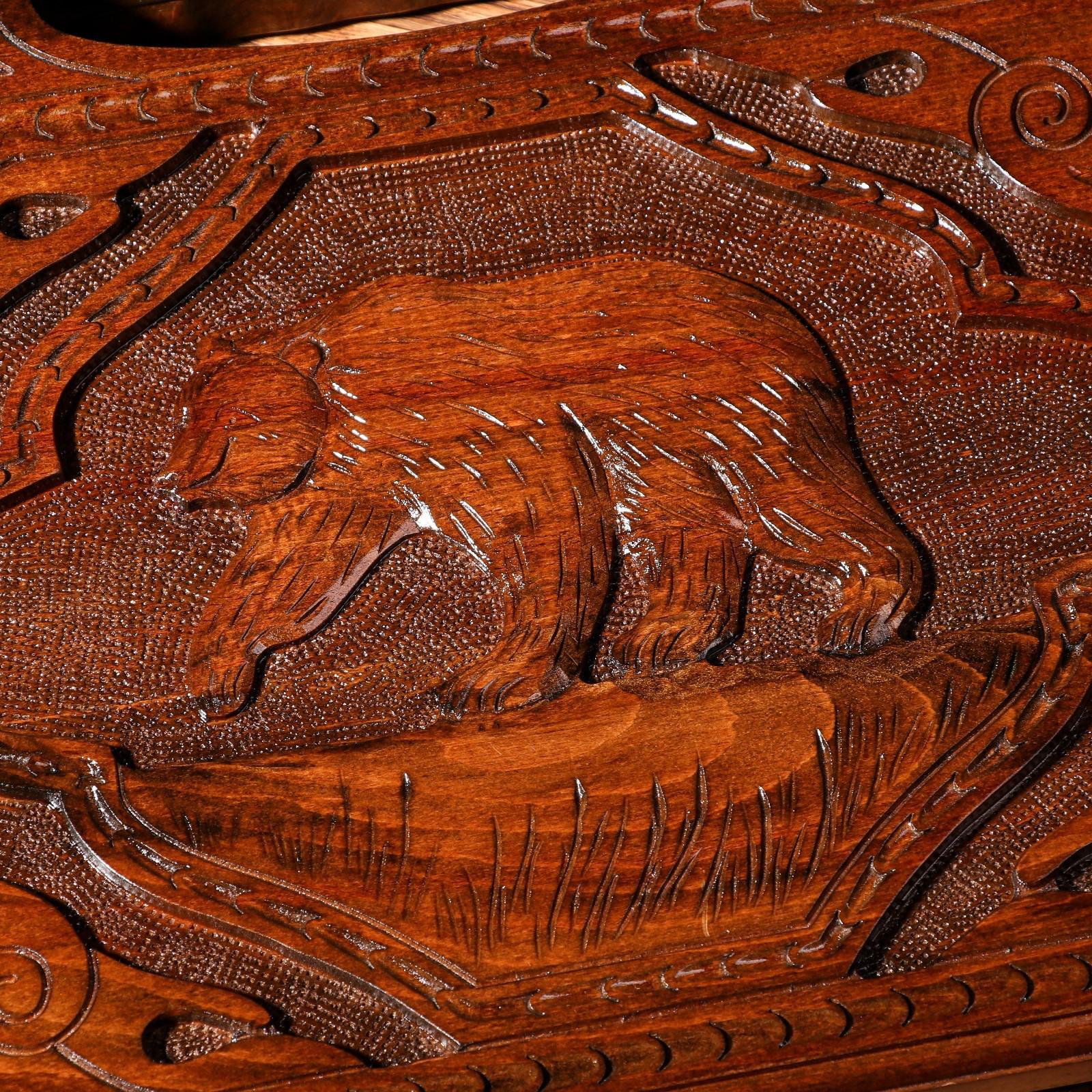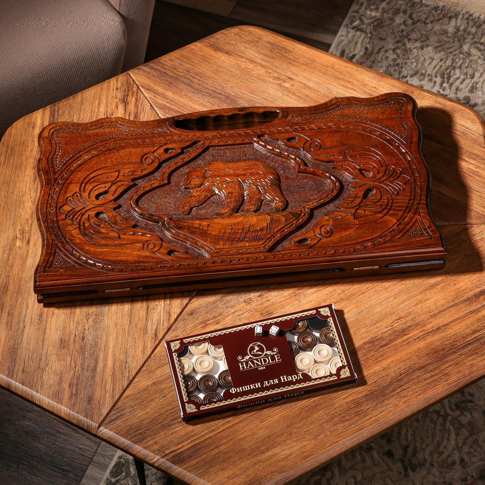 Нарды ручной работы "Медведь" с ручкой, 60х30 см, с шахматным полем, массив ореха, Армения